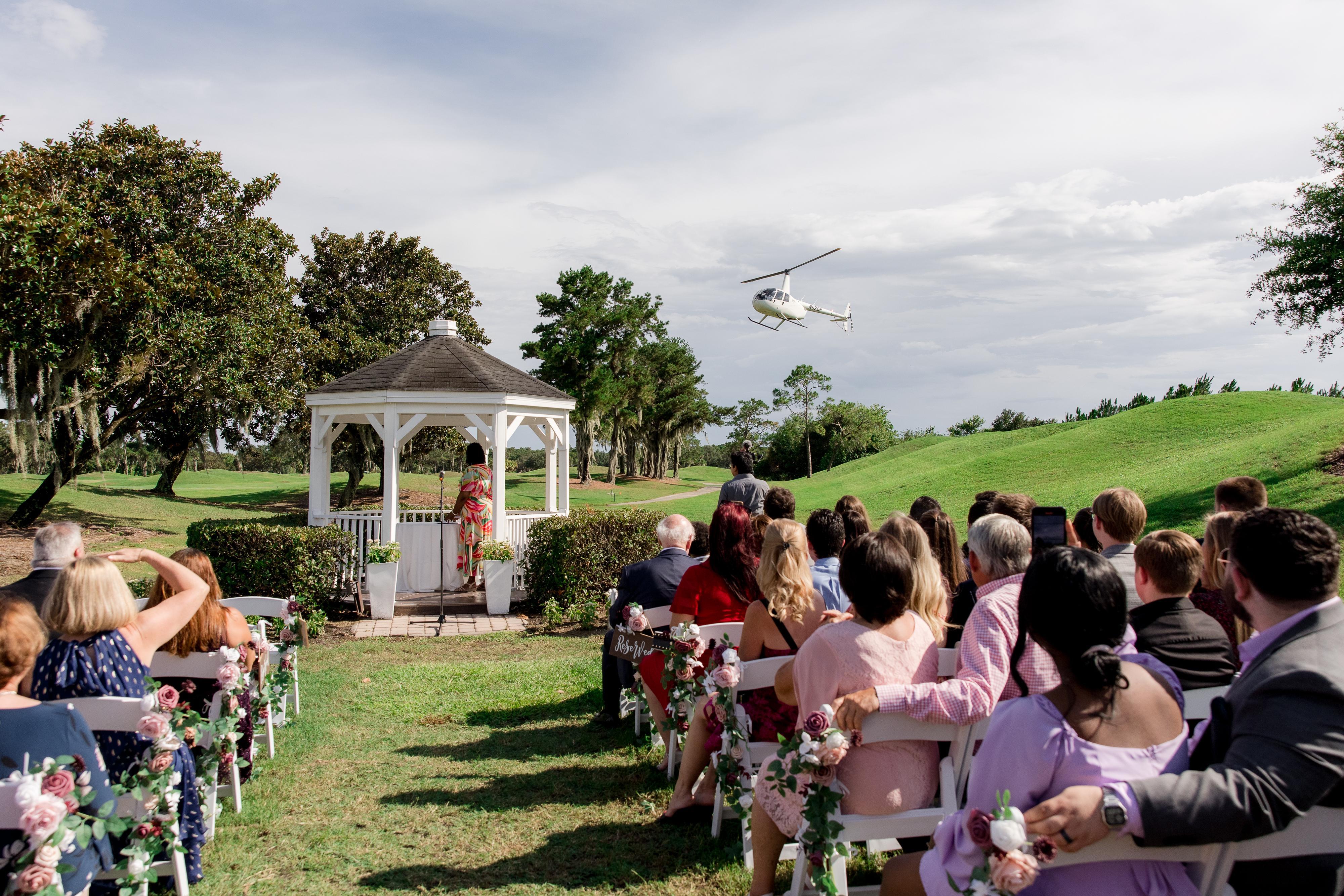 Over the years, Falcon’s Fire Golf Club has had the privilege to be a part of hosting beautifully designed upscale events, creating memories to last a lifetime for our clients. Our venue’s sophistication, elegance and 18 hole beautifully landscaped golf course provide the perfect backdrop for your special day. We have a lakefront ceremony location, golf course gazebo location, and covered breezeway option for ceremonies, and our indoor ballroom comes with exclusive use of the bar/patio area for private cocktail hours overlooking the golf course. Cereonies come with the option to arrive by helicopter for a unique wow-factor for your special day! On-site coordination is available to help your day run smoothly, and our event planners are available to assist in every detail of your big day.