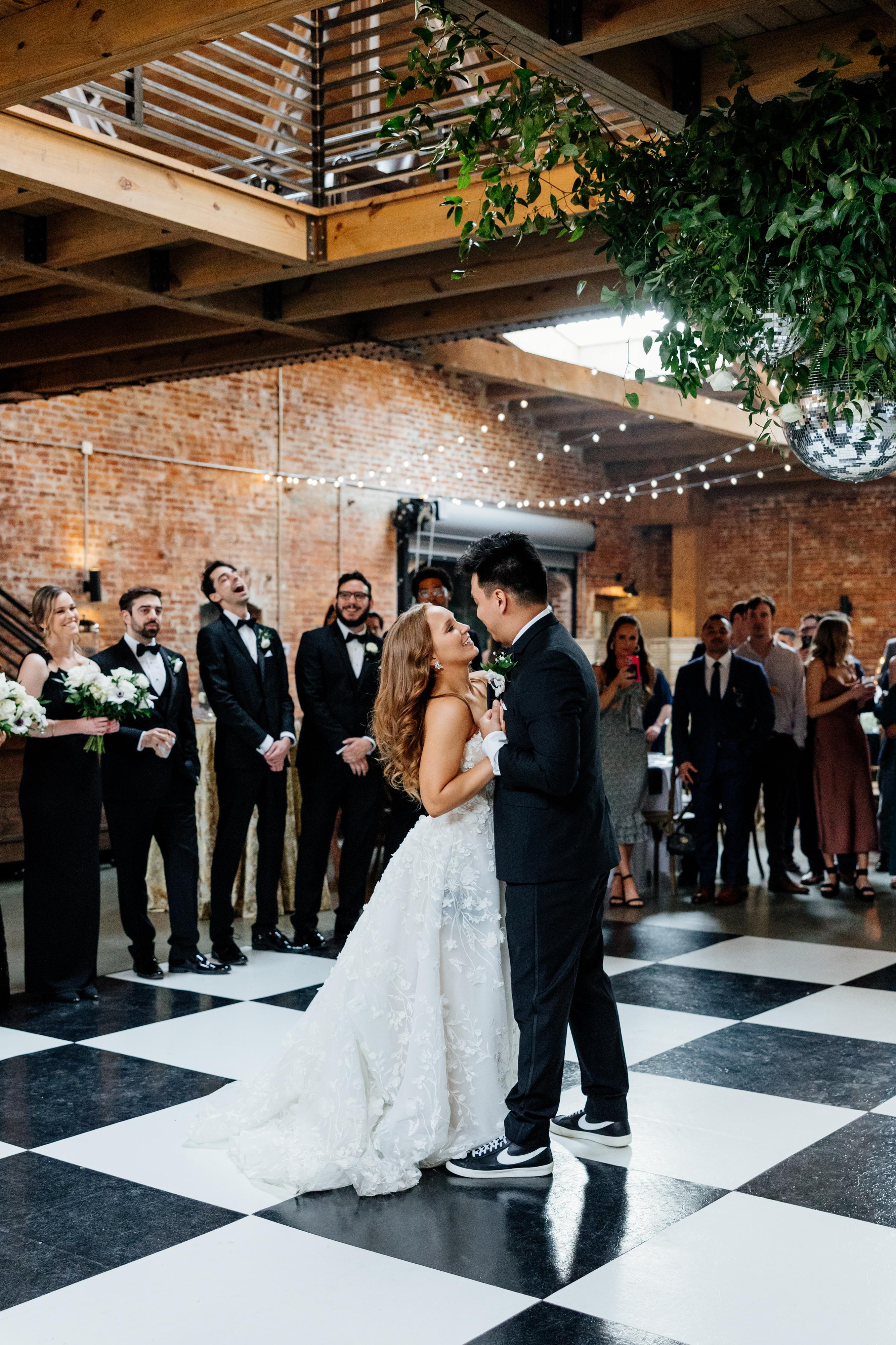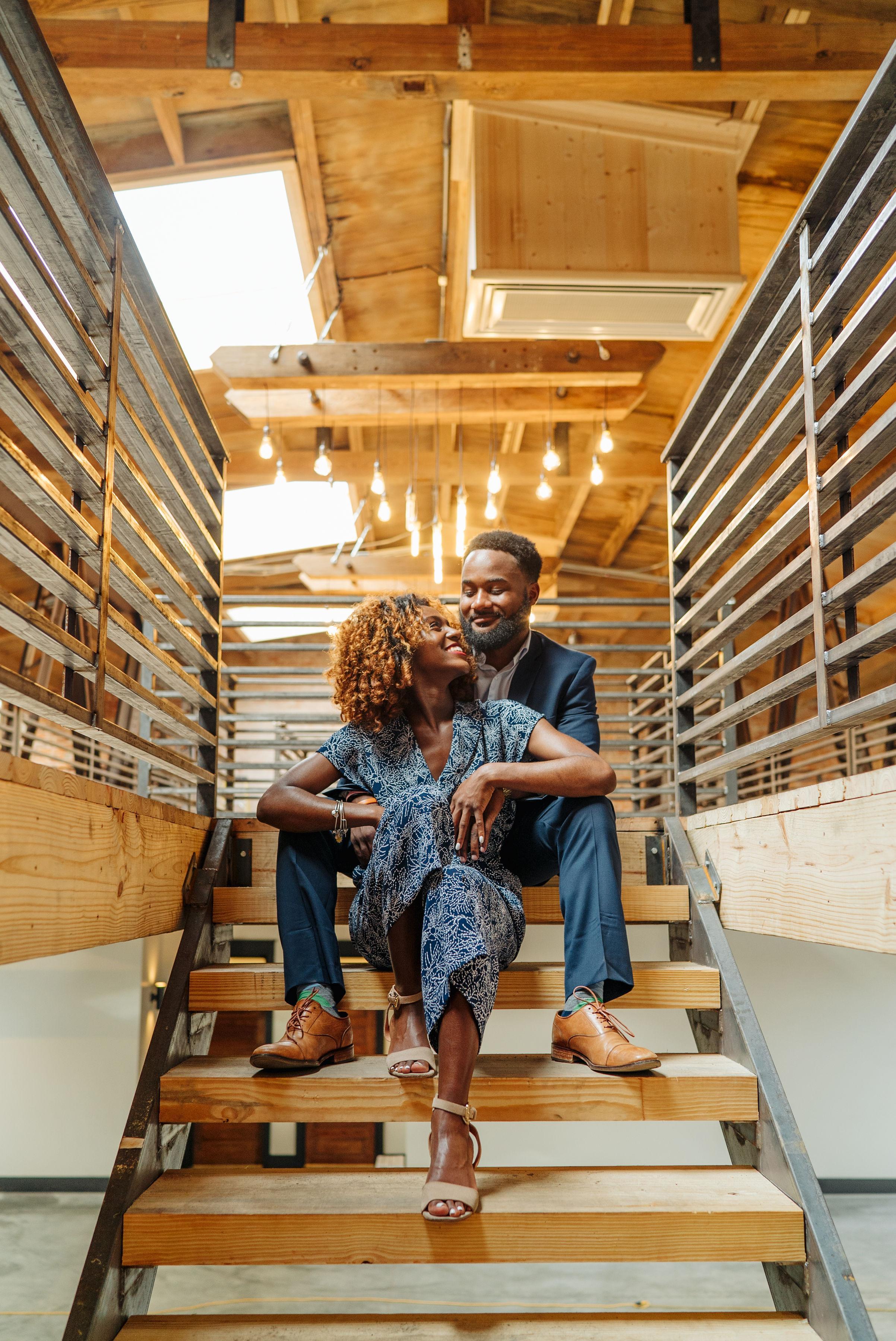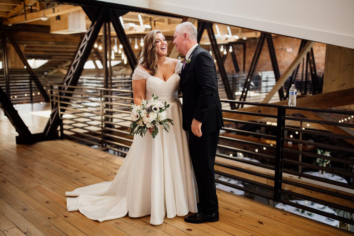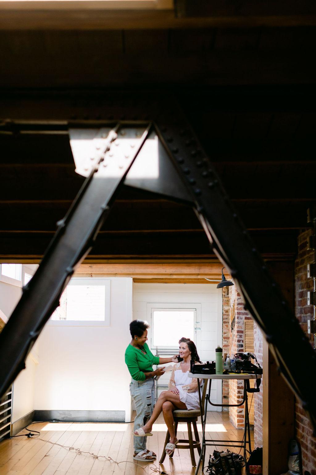 This charming space is perfect for first-look moments, bridal portraits, and all the photos in between! With stair access from both the ceremony and reception sides of the venue, it creates an easy transition between spaces. This space features skylights for natural lighting, original steel work and brickwork. The Juliette balcony that overlooks the ceremony room makes a beautiful spot for ceremony instrumentalists, live painters, and more!