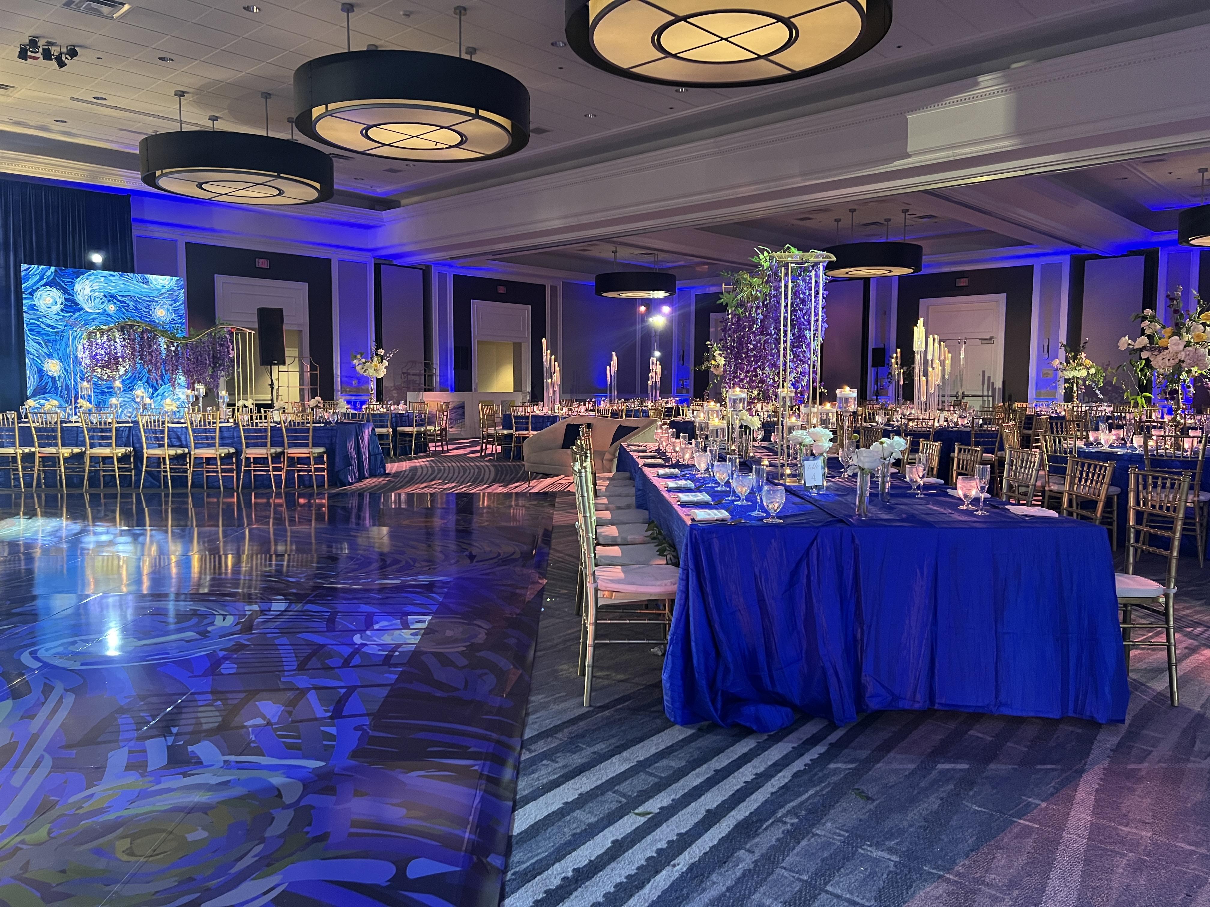 - Private Patio Space - Private Foyer Space - White, black, or ivory hotel linens - Custom natural wood dance floor - Standard tables and chairs provided - Gift, guest book, and place-card tables - Mirror centerpieces with votive candles - Staging for band, DJ, head table, and cake - Dedicated event manager and banquet team - Full staff support throughout your celebration