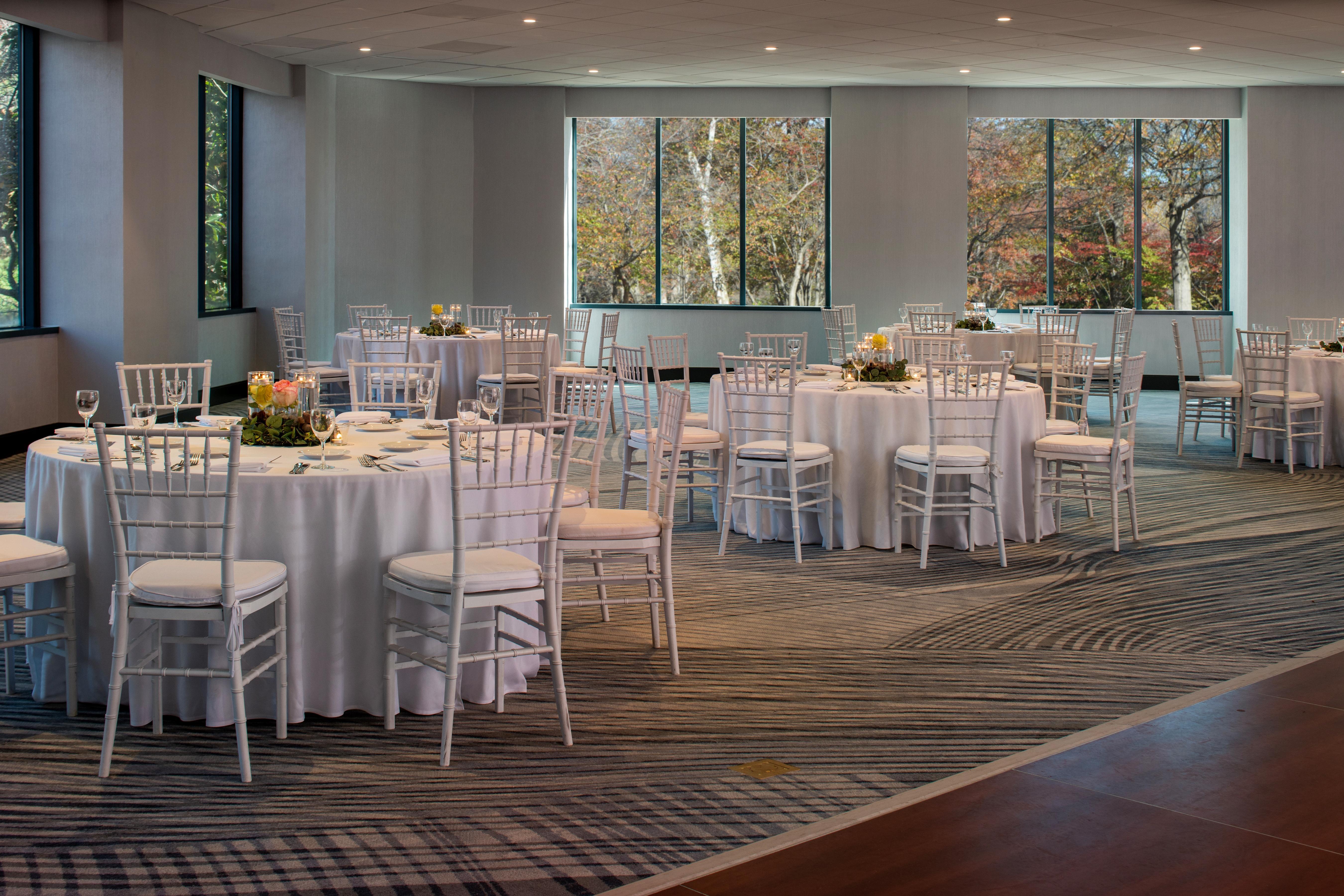 At Falls Church Marriott Fairview Park, your wedding is effortlessly beautiful, personal, and unforgettable, just like you. Nestled in a quiet park just outside DC, our spaces let you celebrate under the open sky or in a stylish, intimate setting. Choose your own caterer or our in-house team, and let us handle the details while you soak in every moment. With cozy rooms, newly renovated spaces, and natural backdrops at every turn, this is where your memories feel at home!