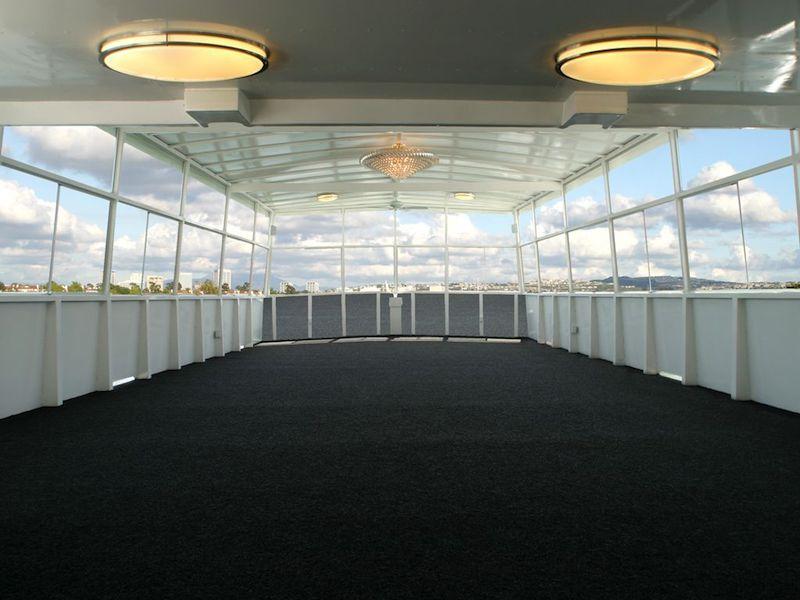 Your guests are welcomed aboard the Captain’s Lounge, complete with modern lounge features and a wall-mounted plasma screen. One level up, the Admiral’s Dining Deck, a formal seating space wrapped with huge bay windows, can seat guests formally for dinner. Proceeding upward, the sweeping expanse of the Party Deck welcomes your guests next, replete with a huge dance floor, a large marble bar and 360º views of the Marina through its sliding glass windows. Saving the best for last, the Sky Deck crowns FantaSea One – a beautiful open deck with the sky as its ceiling; perfect for admiring sunsets or star light, providing a stunning natural setting for your wedding or other important ceremony. FantaSea One is a dream for both guests and party planners alike, as she offers multiple levels of creativity for your vision.