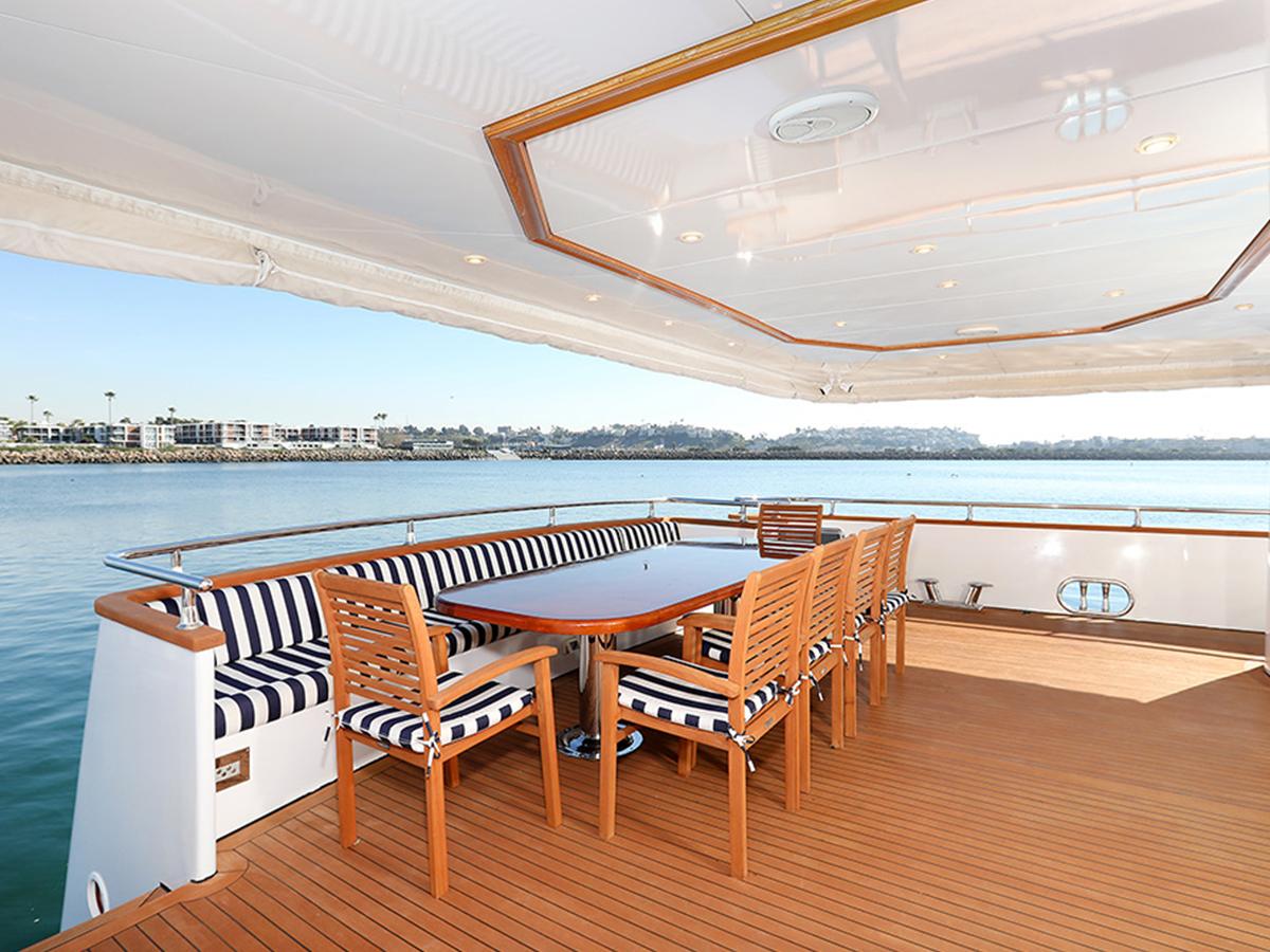 Designed by artisanal European craftsmen, the Admiral XL is luxurious to its core. With exquisite wood appointments, luxurious indoor and outdoor dining areas, and a full-service staff catering to your every need, discover how the Admiral XL has redefined private luxury cruising. Half day and full day cruises are available embarking from the serene Marina del Rey harbor. Rental of the Admiral XL includes the complete services of the Captain and his crew along with fuel, docking, and insurance fees. Catering and bar services are available upon request and will be quoted separately.