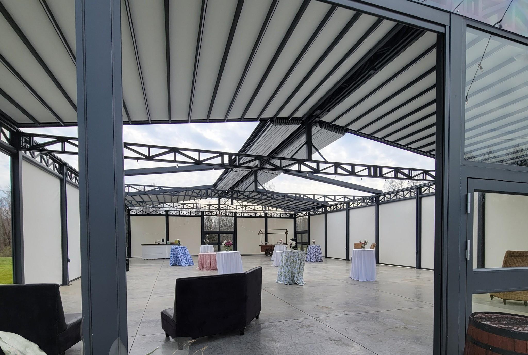 With retractable walls and ceiling, this space can be configured to your unique specifications. Whether you want a celebration under the starry night sky, a traditional reception space, or a market light atmosphere Novacelli is a beautiful option for your wedding ceremony or reception.