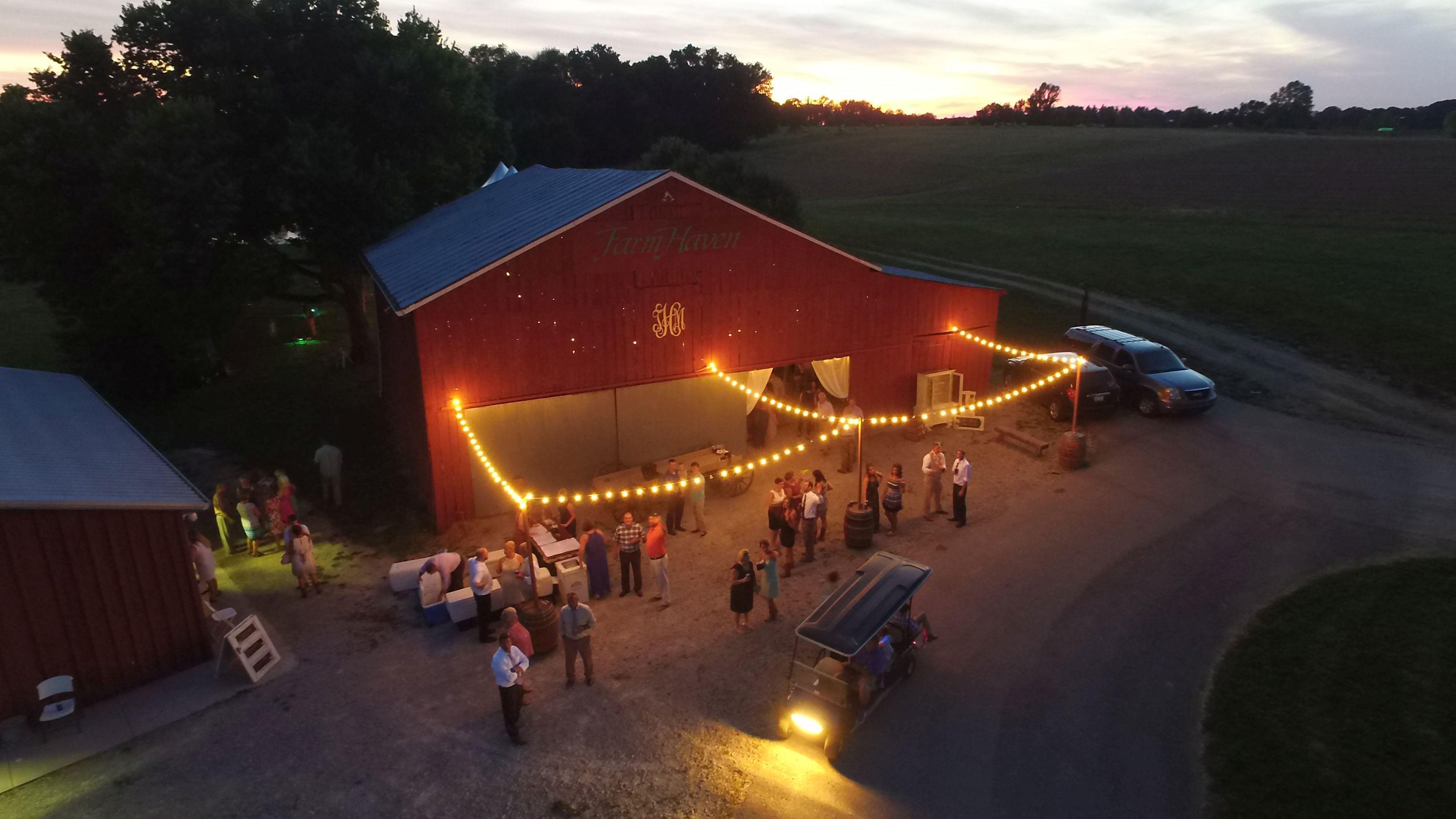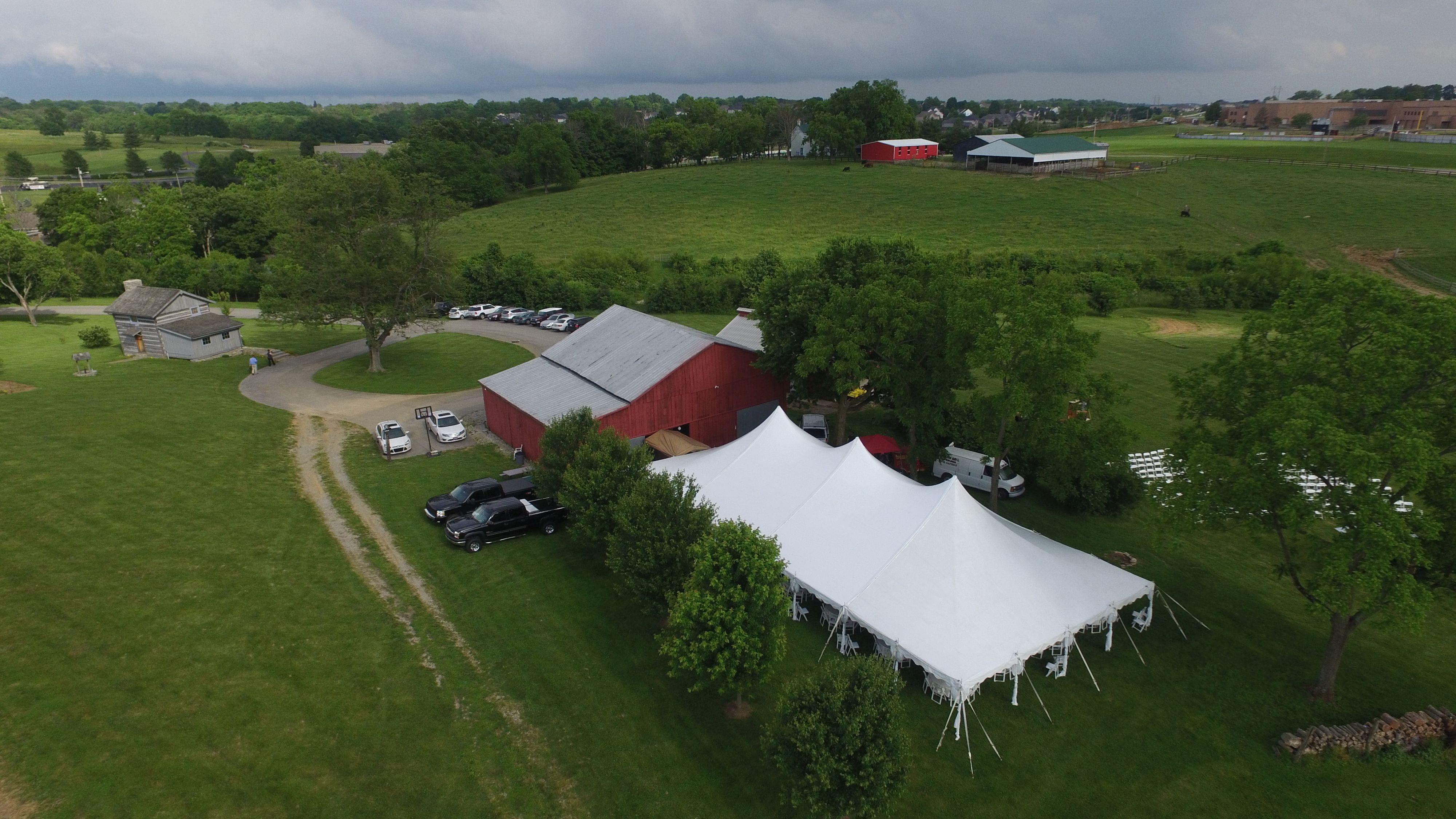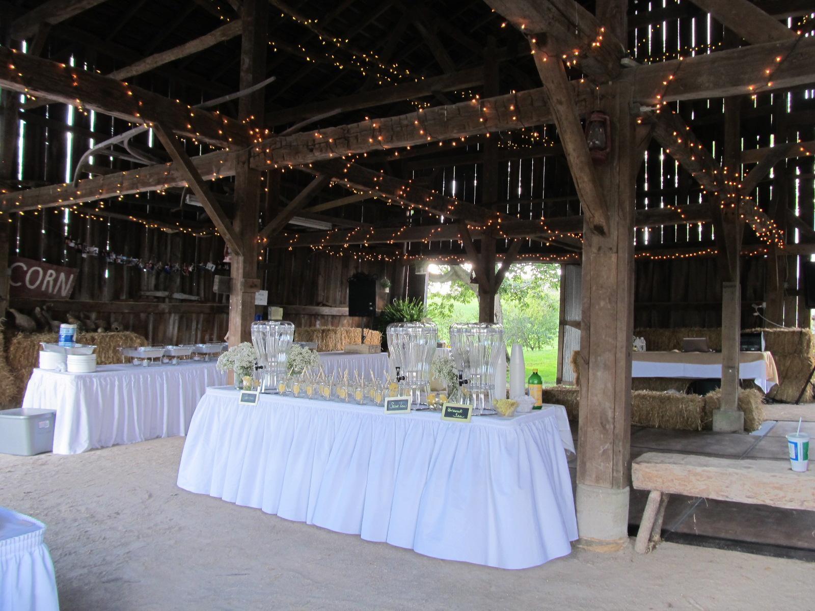 This is a working farm, with many animals. We have a mix of very old (log house and tobacco barn) with a new kitchen area and restrooms, on public water and sewer. The unique and picturesque country setting is just 20 minutes from downtown Cincinnati. There is a circa 1800’s barn with exposed post and beam construction, a historic log cabin, a newly constructed Sugar Shack with modern men’s and women’s restrooms, a kitchen, a bar area and a small dining hall. The beautiful large lawn areas are adjacent to the buildings and are appropriate for use as an outdoor ceremony site. We even have a portable white wedding arbor ready to decorate.