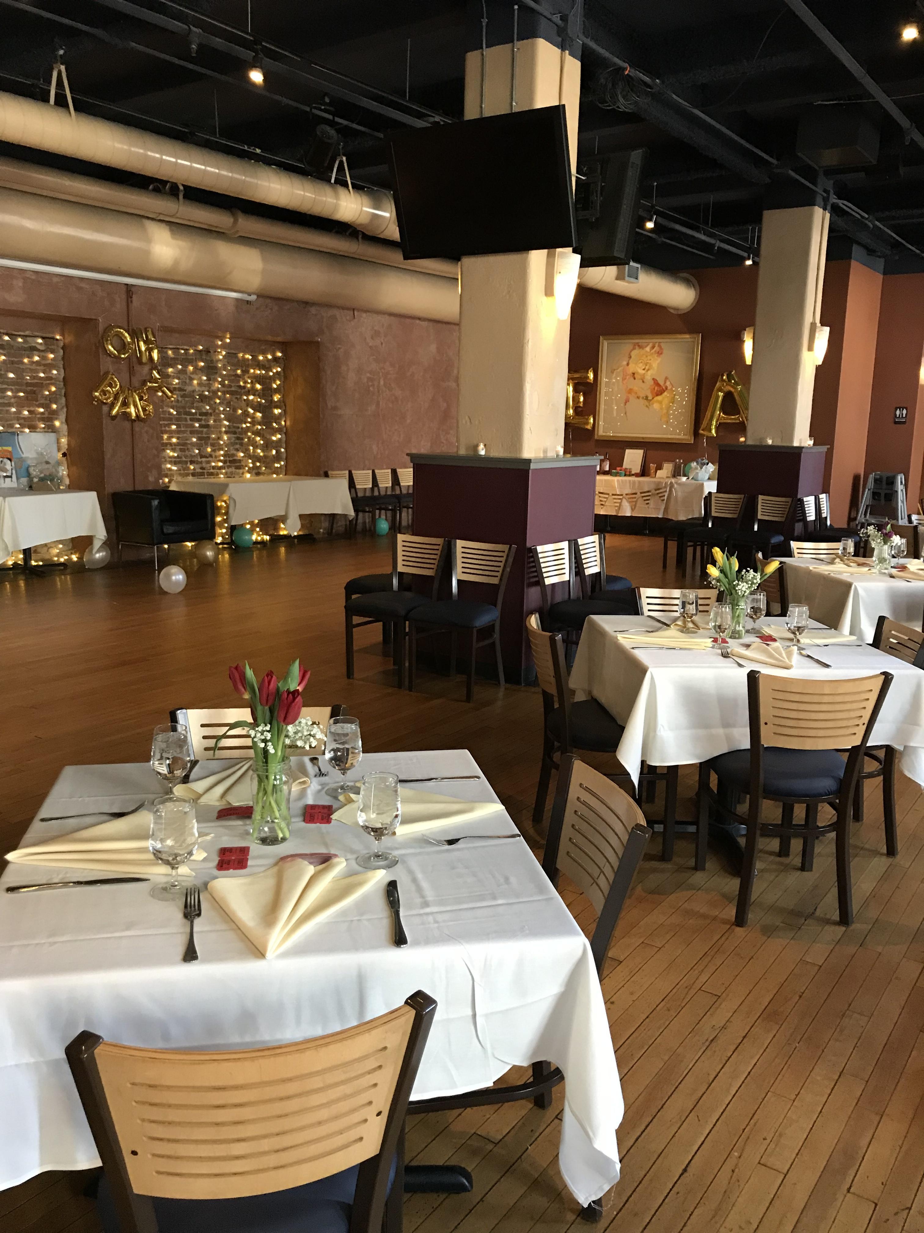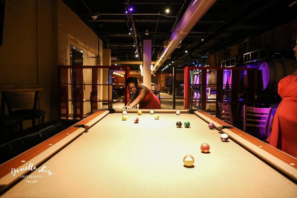 This venue features an expansive built-in bar, high tops and vinyl couch seating. Full size pool table and fooz ball table available as well.