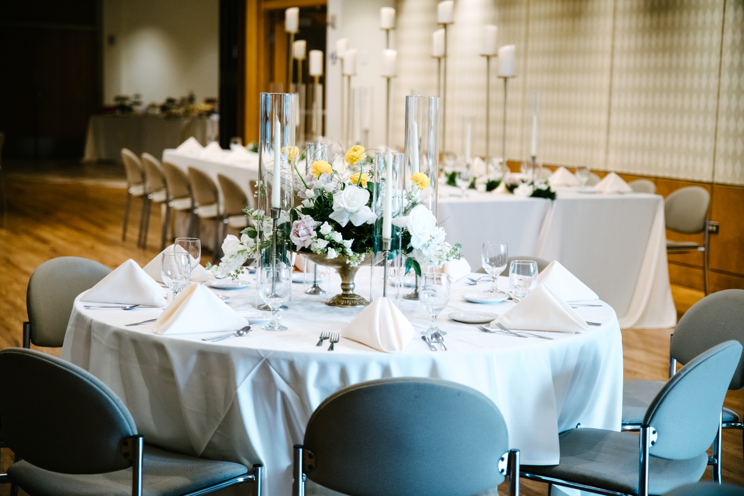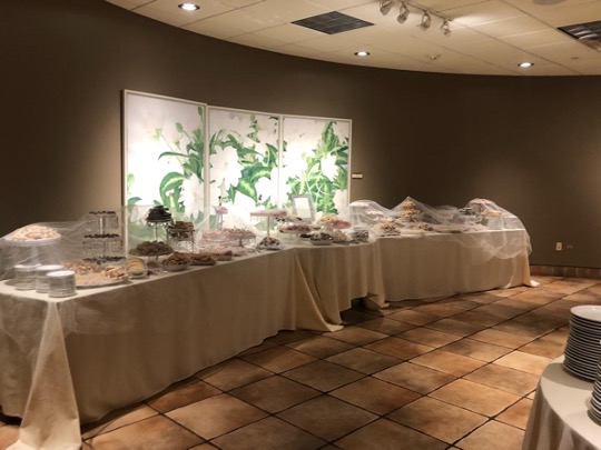 Two spectacular floral watercolor paintings by renowned artist, Gary Bukovnik, highlight the unusual shape of the room. When rented along with the Rossi Auditorium, the Radius Room is an ideal location for the buffet and cookie table.