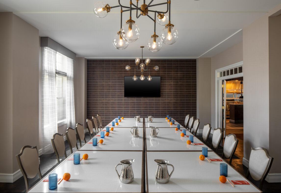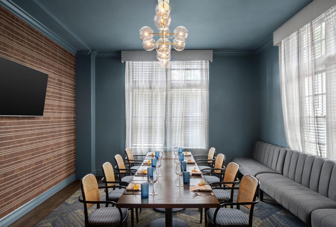 Room 27 is our smallest private dining room, filled with natural light, and will accommodate up to 12 guests max. The room has a plasma TV for A/V hookup.