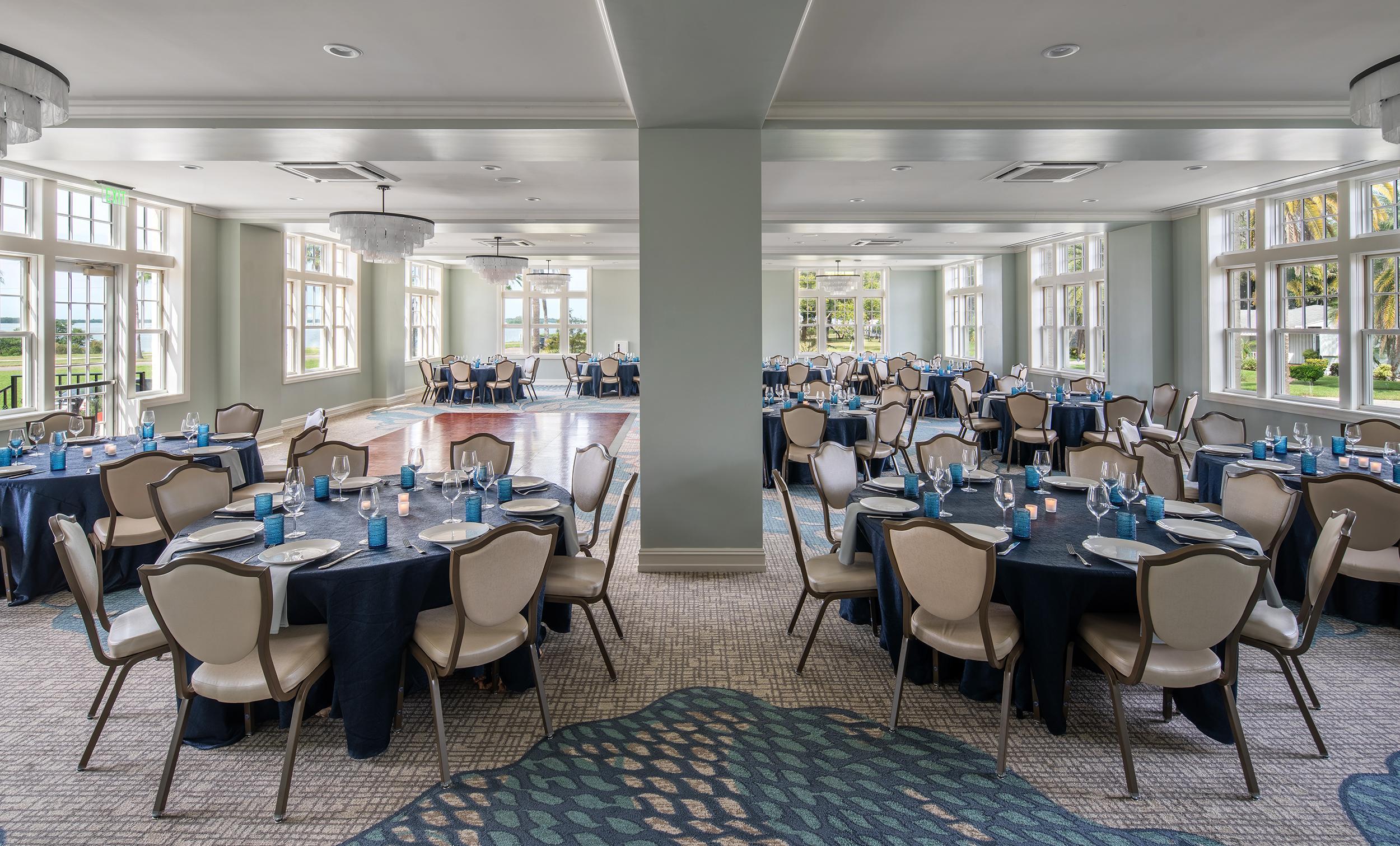 The Caladesi Ballroom is our largest indoor space, filled with natural light and a beautiful view of the St. Joseph Sound. An adjoining outdoor terrace is yours to enjoy as well and makes for the perfect spot to welcome your guests with a cocktail or watch the sunset over the water!
