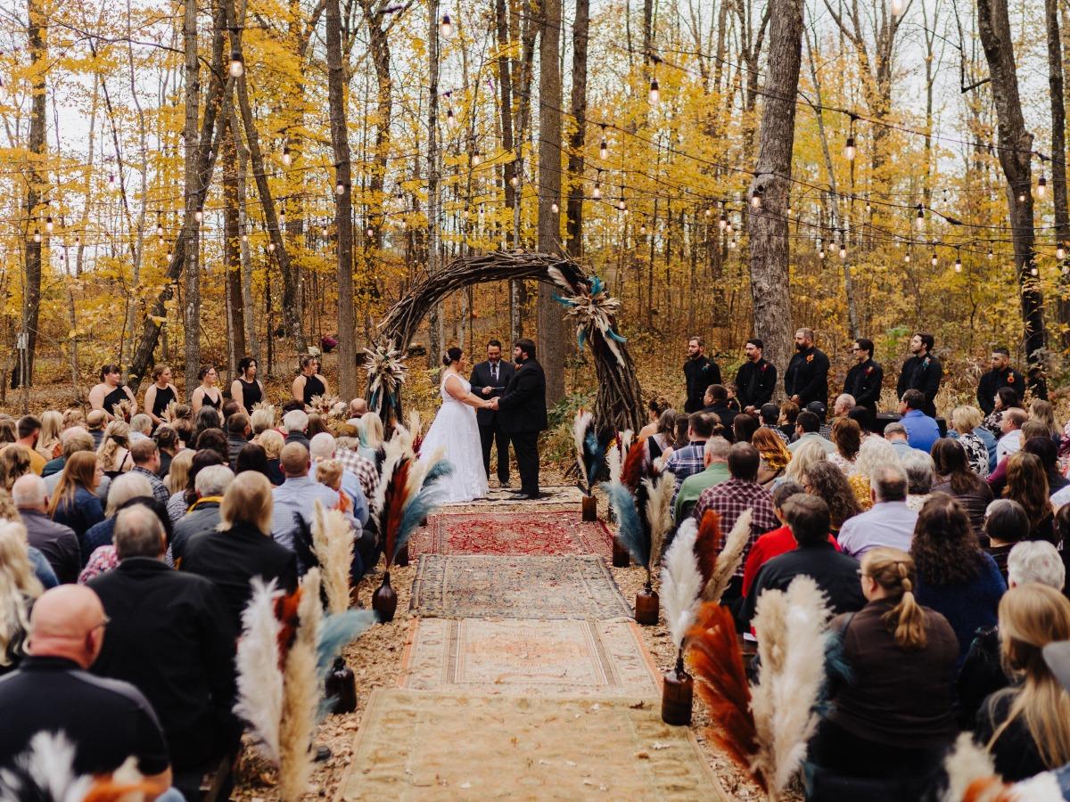 Have the most intimate outdoor ceremony site tucked away in the woods, seating up to 300 guests.