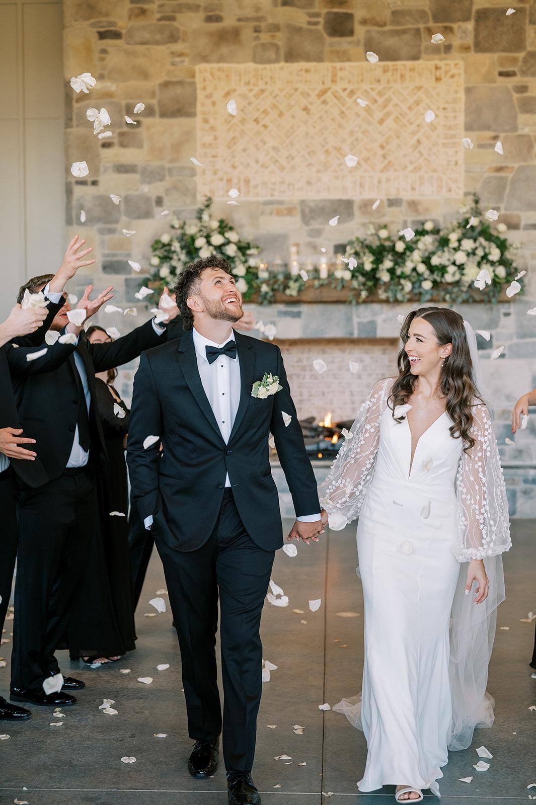 Fields at Skycrest is casual elegance at its best! This unique venue is situated on an 95 acre working farm. The setting is relaxed and peaceful while the event space designed is classic and elegant. Whether the couple is looking for an outdoor ceremony surrounded by trees and open fields or a covered outdoor ceremony space, Fields at Skycrest has you covered. The indoor climate controlled reception space that can accommodate 300 guests is light and airy and includes everything from a beautiful fireplace, to a grand metal staircase, to clear doors that can be opened to the large outdoor patio. Couples have the ability to get dressed on site in beautifully appointed suites where every detail has been considered for comfort of guests and vendors alike. All rentals like tables, chairs, and linens are included in the booking fee.