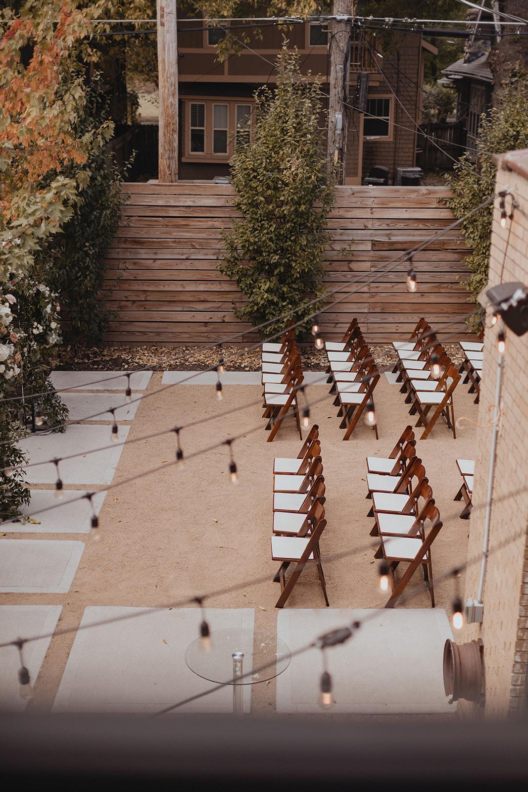 Ideal for wedding ceremonies, receptions, and cocktail hours, our private Courtyard boasts beautiful greenery, seating for up to 120 guests, and outdoor cafe lighting.