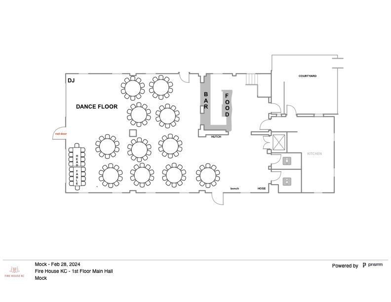 Housed in the restored Fire Station No. 31, Fire House KC has been meticulously renovated with tradition and elegance. Throughout the entire space, several preserved accessories and artifacts from the era are showcased, including the original fire pole, antique fire hose cart, and fire hose shaft. Blending the history of the area with modern infusions, Fire House KC is now a classy, elegant, and charming event space. The main hall showcases original brick walls and windows, with antique chandeliers adding a touch of elegant refinement. The second floor, which once housed the offices and sleeping quarters for one-duty workers, now features multiple suites for the wedding parties to prepare as well as a perfect intimate ceremony room. A private courtyard space is also available, making an ideal area for a ceremony, cocktail hour or for guests to enjoy a breath of fresh air. Newlyweds-to-be can host both ceremonies and receptions at Fire House KC and have access to the entire space.