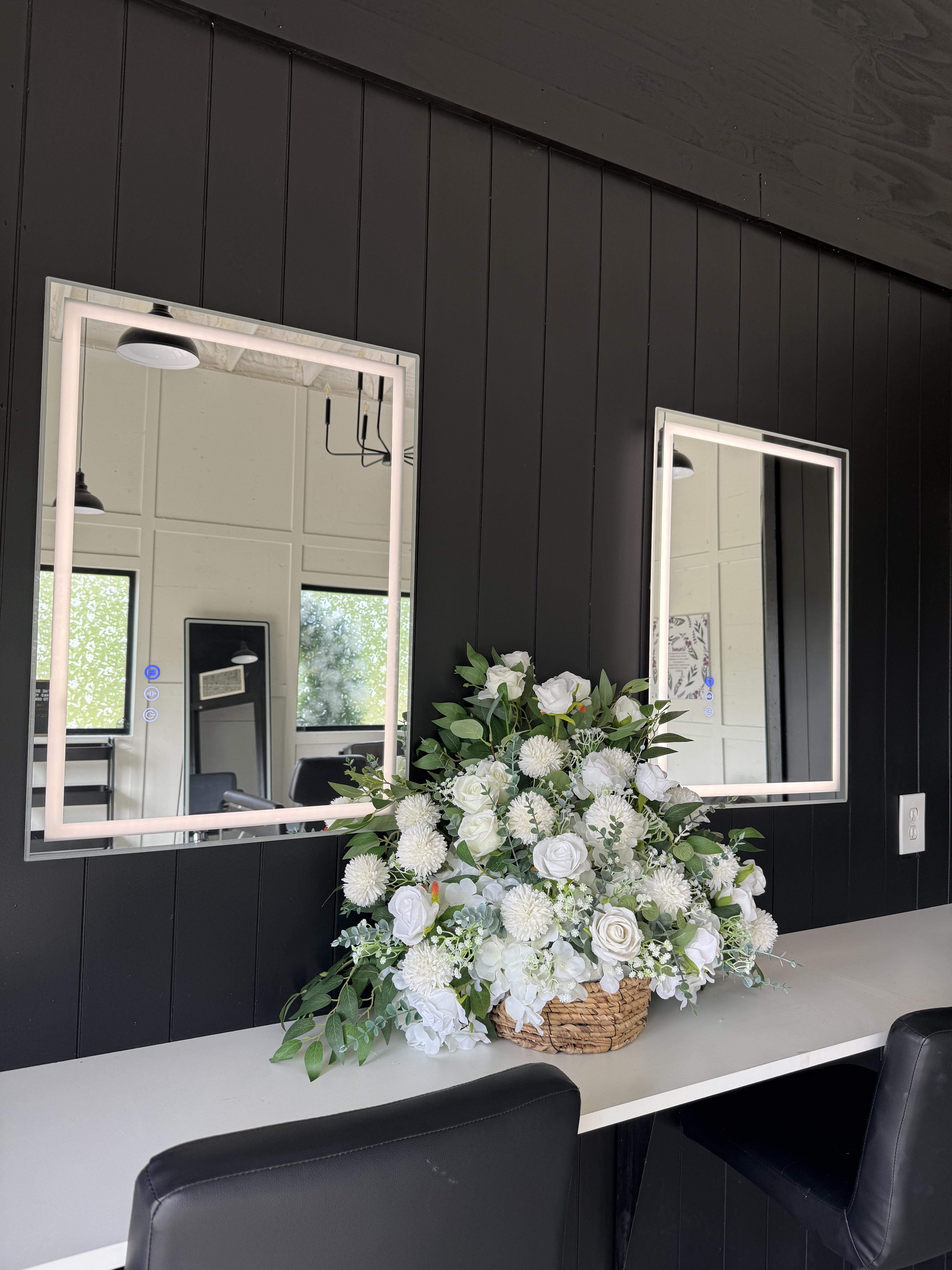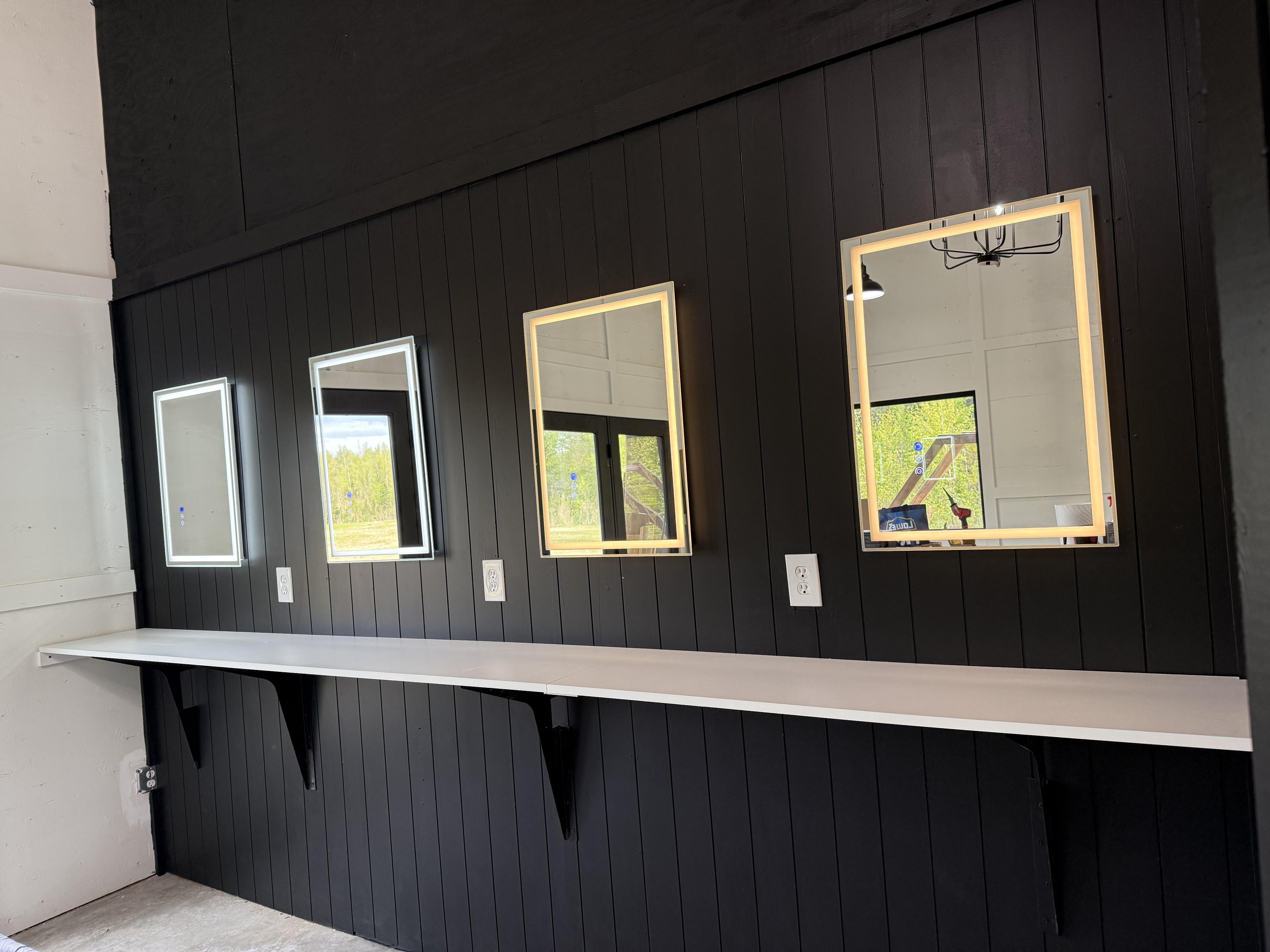 A private 400 sq. ft. bridal suite designed for calm and glow — with large windows, custom touches, and light-up mirrors to make every moment picture perfect