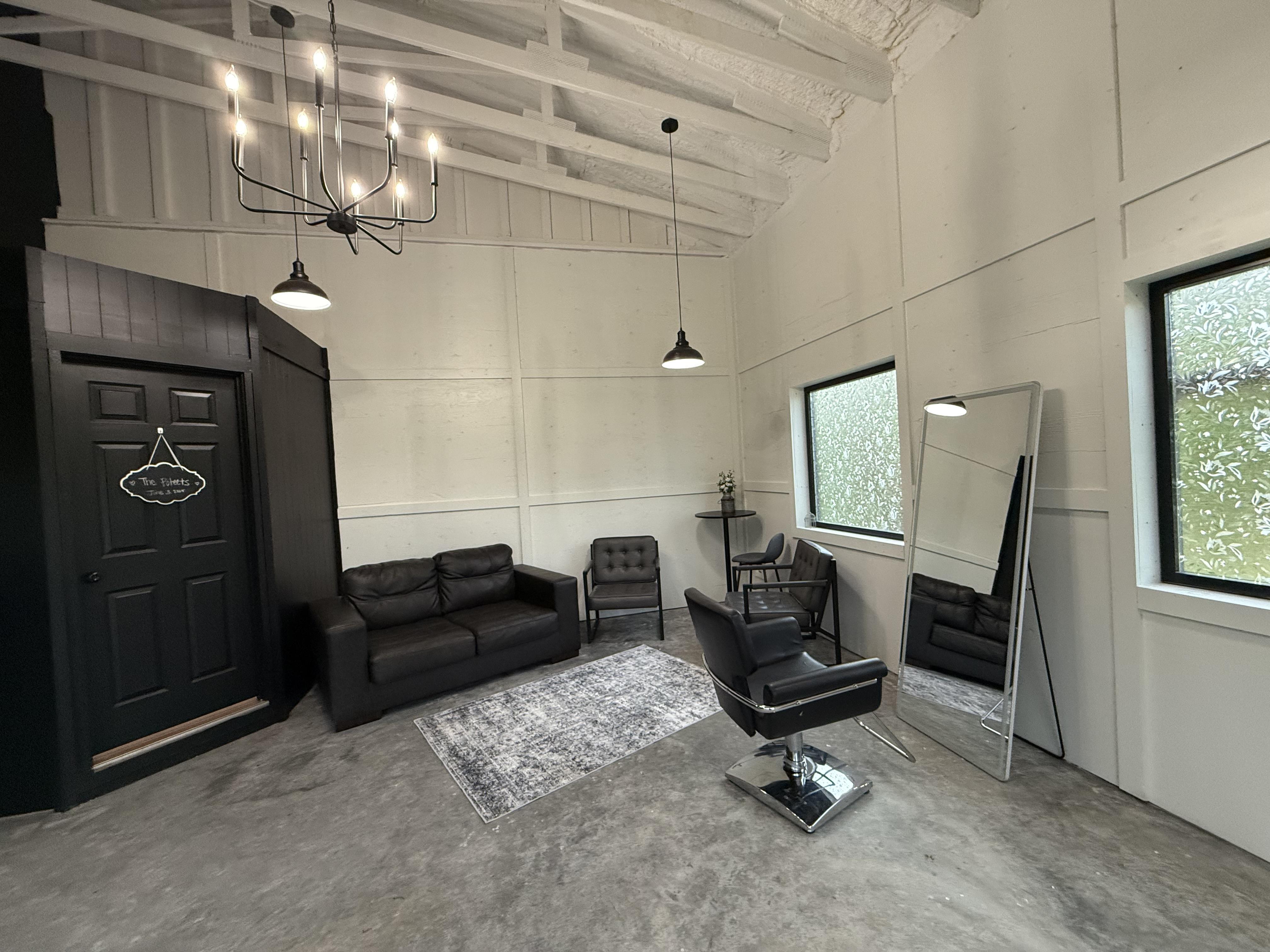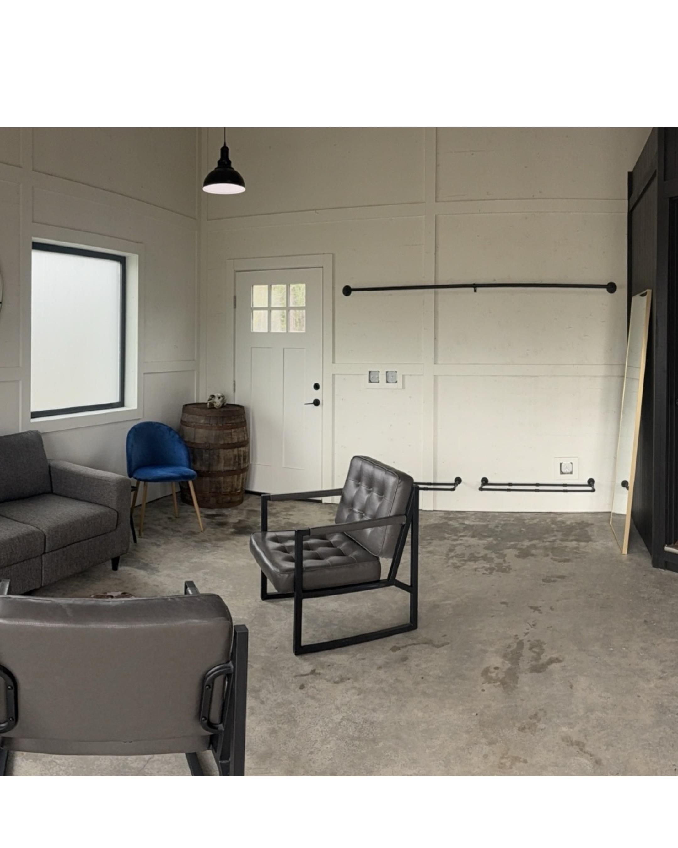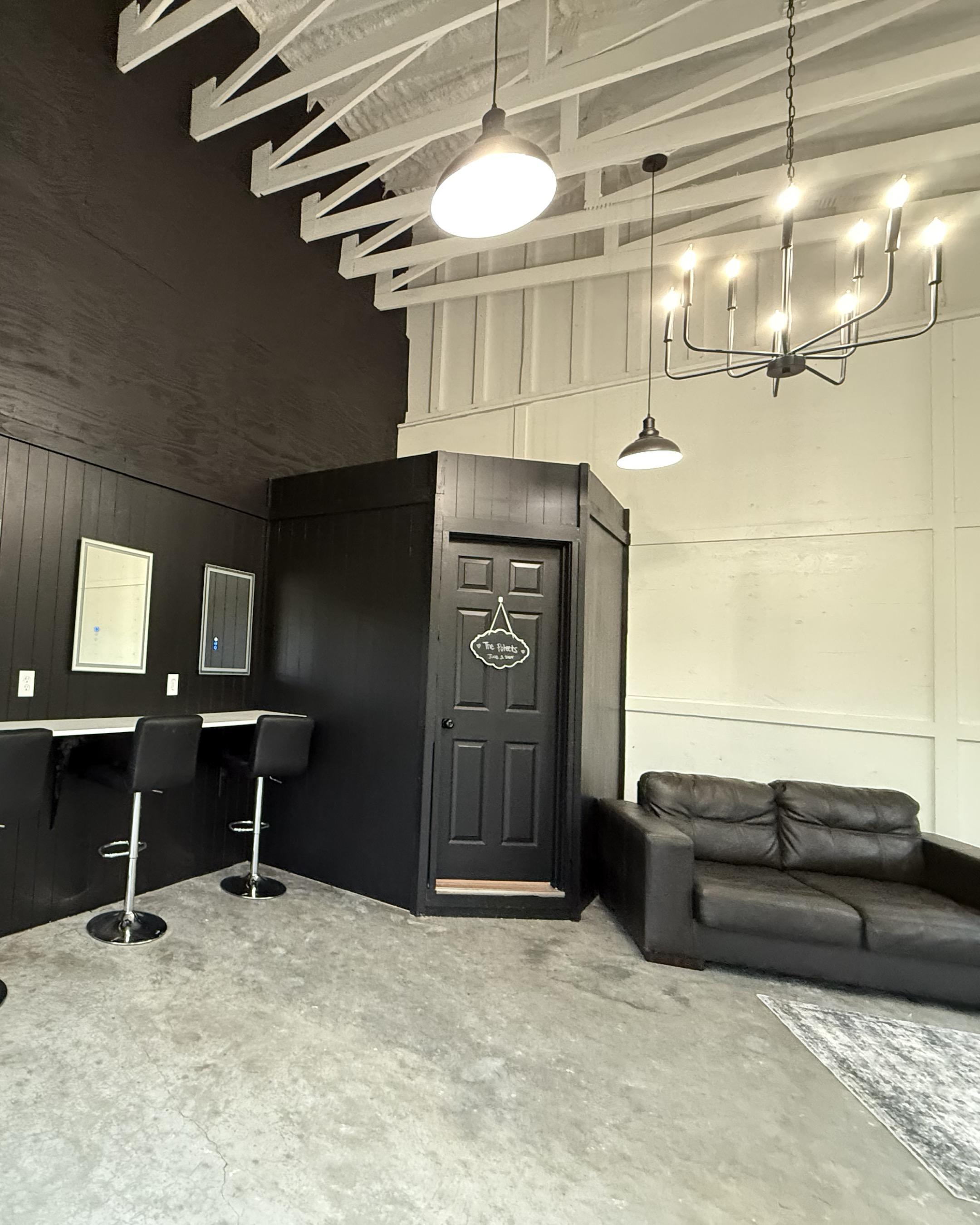 A 400 sq. ft. groom’s suite built for comfort and good vibes — featuring a private bar, big windows, and a relaxed hangout space to kick back before ‘I do.’