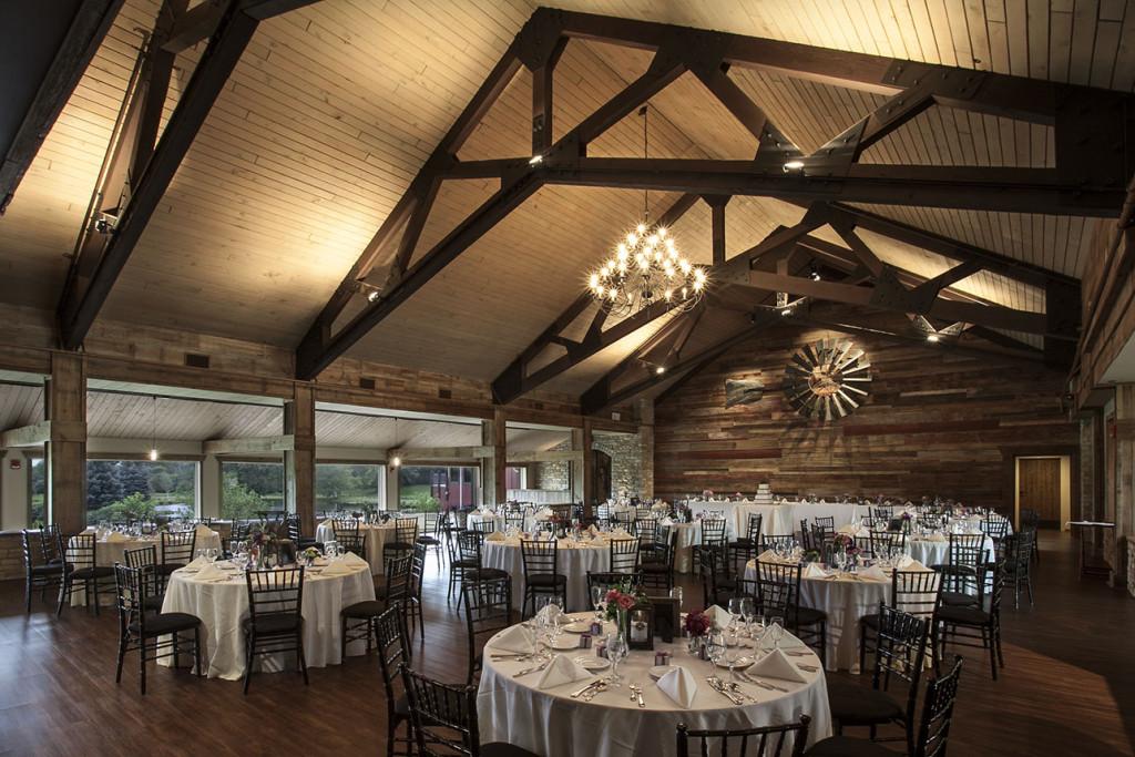 The Loft offers rustic elegance enhanced by beautiful barn wood ceilings, gleaming hardwood floors and elegant Chandeliers. This warm, romantic atmosphere invites you and your guests to enjoy the stunning views of the surrounding ponds and gardens while celebrating your perfect day. Loft Overlook Deck Included.