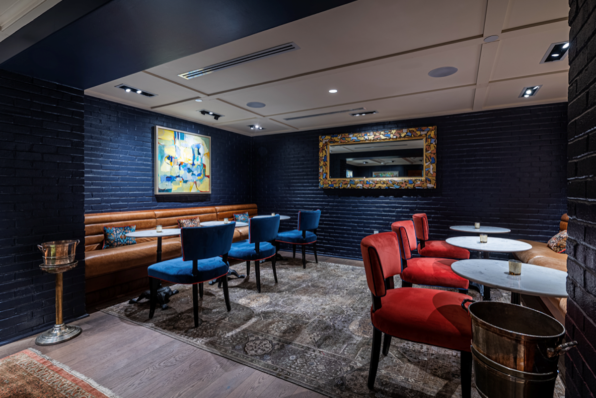 This vibrant area includes a dedicated portion of our main bar and is decorated with striking portraits by artist Garnet Jex. With ample room for mingling and enjoying passed hors d’oeuvres, it provides a lively and stylish setting for your special event.