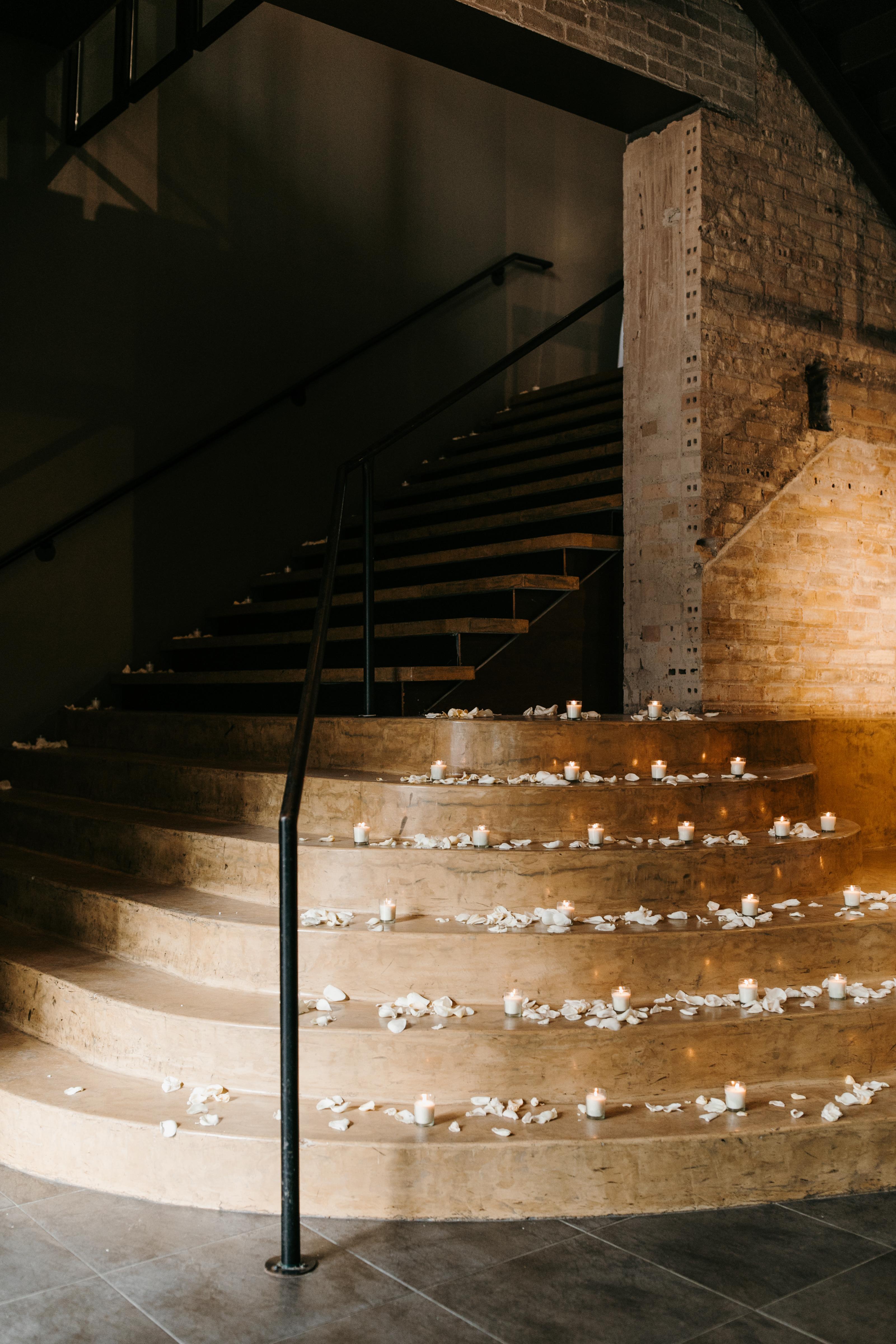 Our lower level is where you’ll typically host your social hour. This space features luxurious lounge furniture, a built-in bar for your guests to grab a drink after the ceremony, good natural light, and six single-stall bathrooms. Your guests will enter your event here and be greeted with our grand staircase that will lead them up to your ceremony!