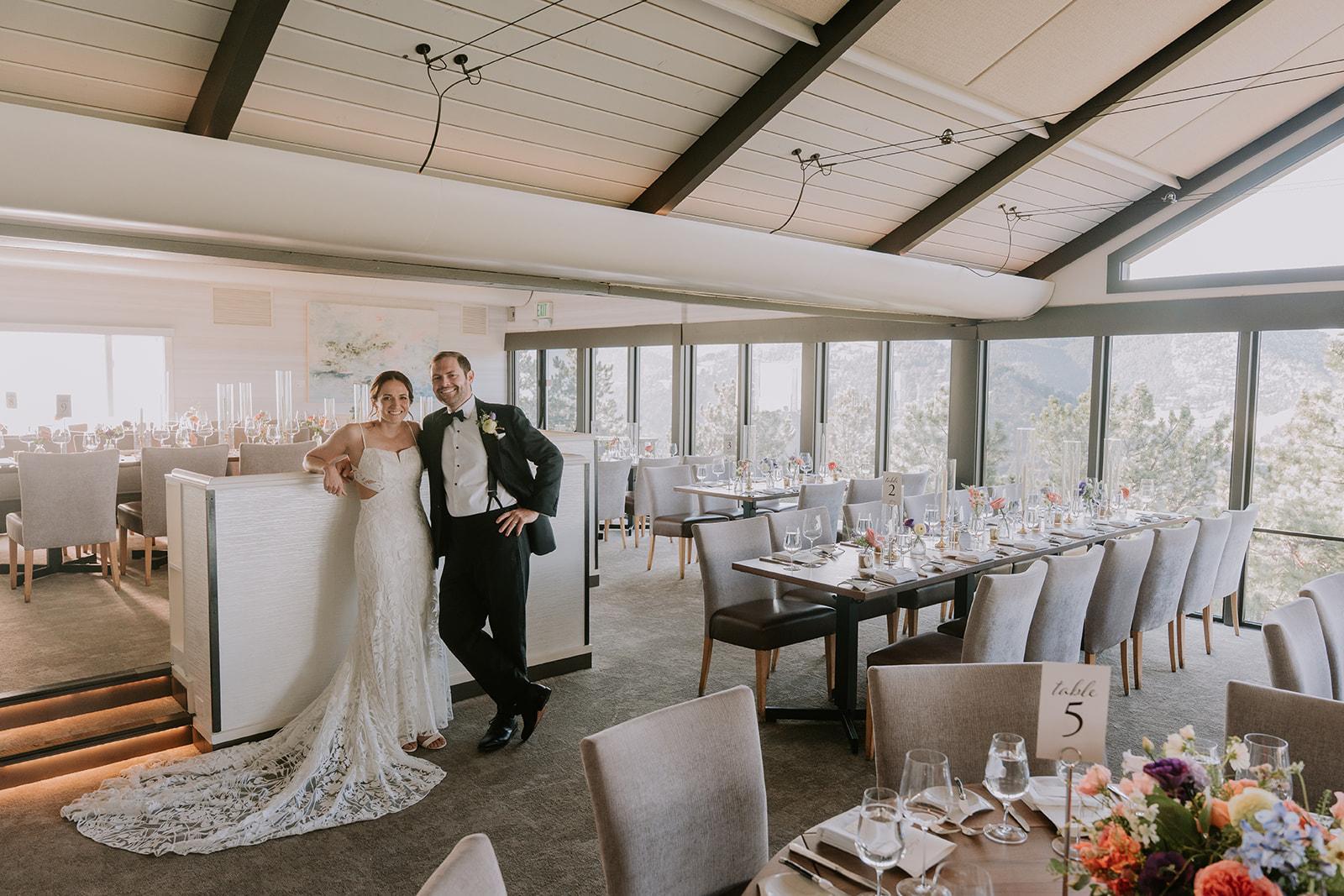 An evening wedding at The Flagstaff House is available for a guest list of up to 150 people from May through October or up to 100 people from November through April. This exquisite offering lets you and your guests transition from mountain backdrops to city lights as the night progresses. Hours are your choosing; popular timeline is 5:00-10:00pm.