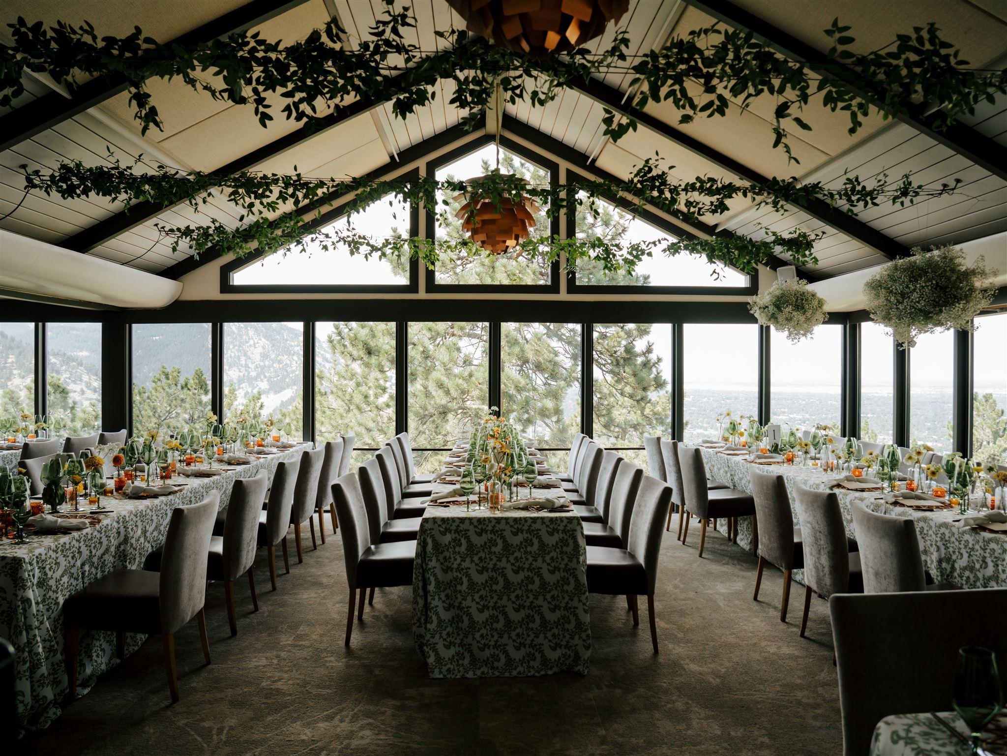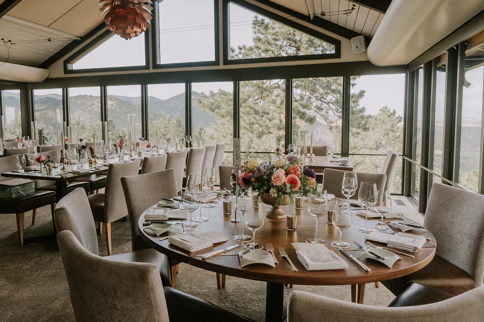 The Flagstaff Room is our largest dining area and features panoramic views overlooking Boulder and the nearby mountains. Generally utilized for lunch or dinner service, this iconic space seats a maximum of 100 people. The Flagstaff Room is indoors and climate controlled.