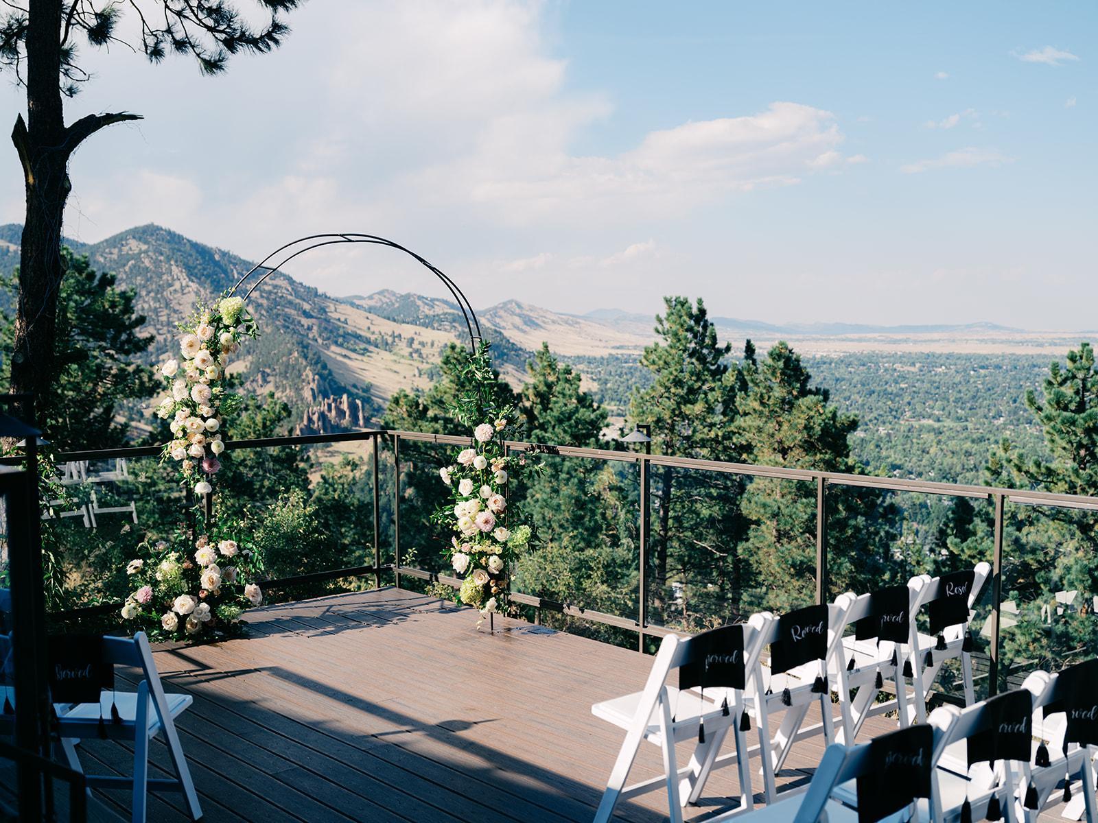 The Terrace features our quintessential backdrop of both the Rocky Mountains and Downtown Boulder. This picturesque area is our primary ceremony location and is also used for cocktail space. The Terrace seats a maximum of 80 people for a ceremony but welcomes more with a mixed seated and standing option.
