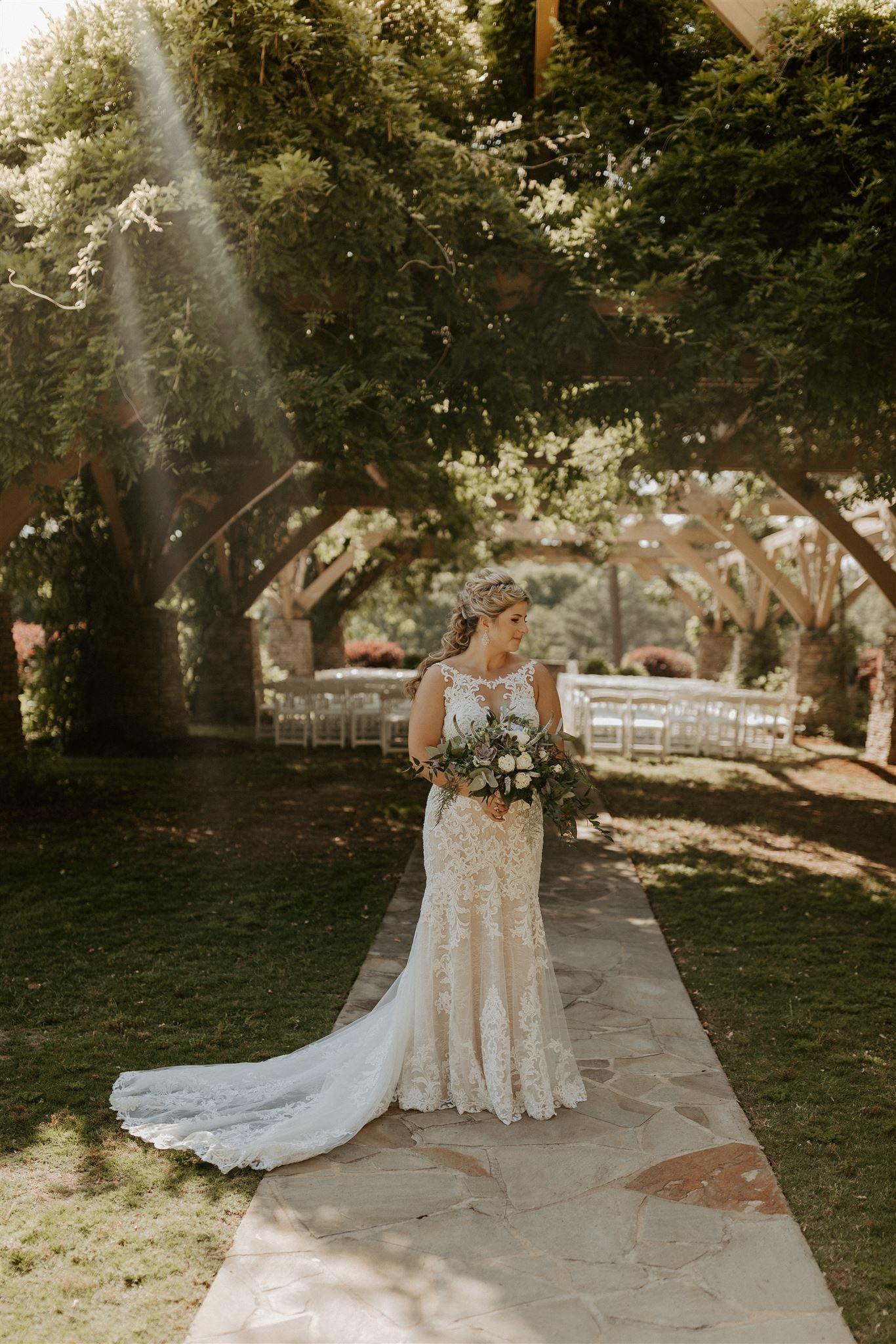 A wedding at Flat Creek Country Club can only be described as spectacular. The ballroom is decorated with lovely shades of muted grays and golds with floor to ceiling windows that offer unobtrusive views of the luscious golf course. The wood beamed ceiling soars above your guests offering an intimate atmosphere for even the largest of groups. Our outdoor ceremony site is simply breathtaking. A cobbled walkway and wisteria covered stone and pine arbor leads you to a beautiful alter overlooking a hillside with a flowing creek at its base.