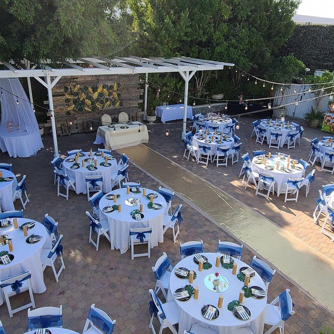 We have 2 outdoor courtyards available for your event, as well as indoor spaces such as the Bridal Suite, Groom's Room & Living Room. Your wedding ceremony can be held in our smaller more intimate courtyard and your guests can flow into the adjoining larger courtyard for a fun and festive reception!