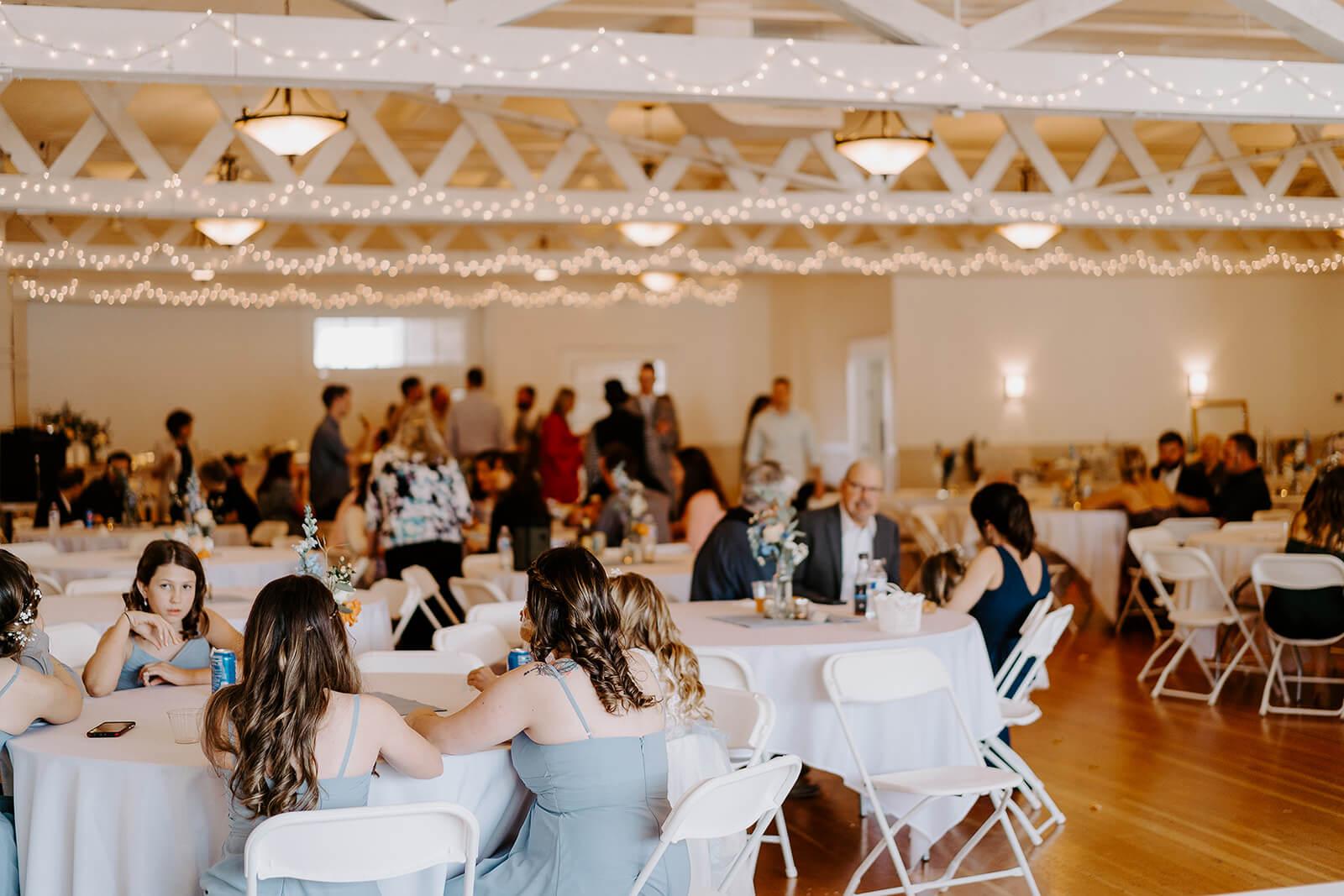 This versatile venue accommodates up to 226 guests with a combination of round and rectangular tables and white folding chairs. A spacious bar area, complete with sinks and a refrigerator, is ideal for buffets and serving. The venue also features a separate food prep area with additional amenities.
