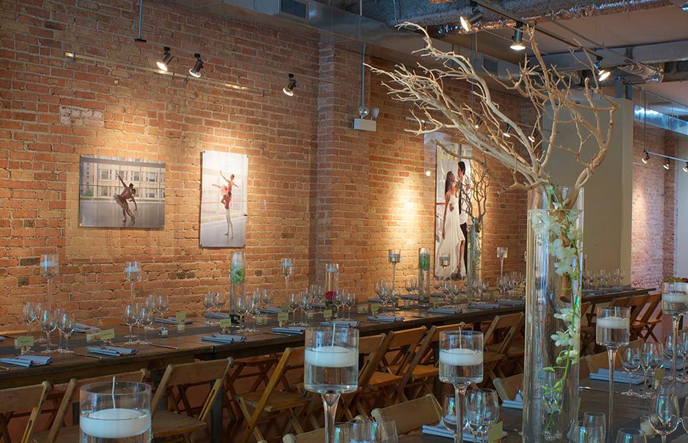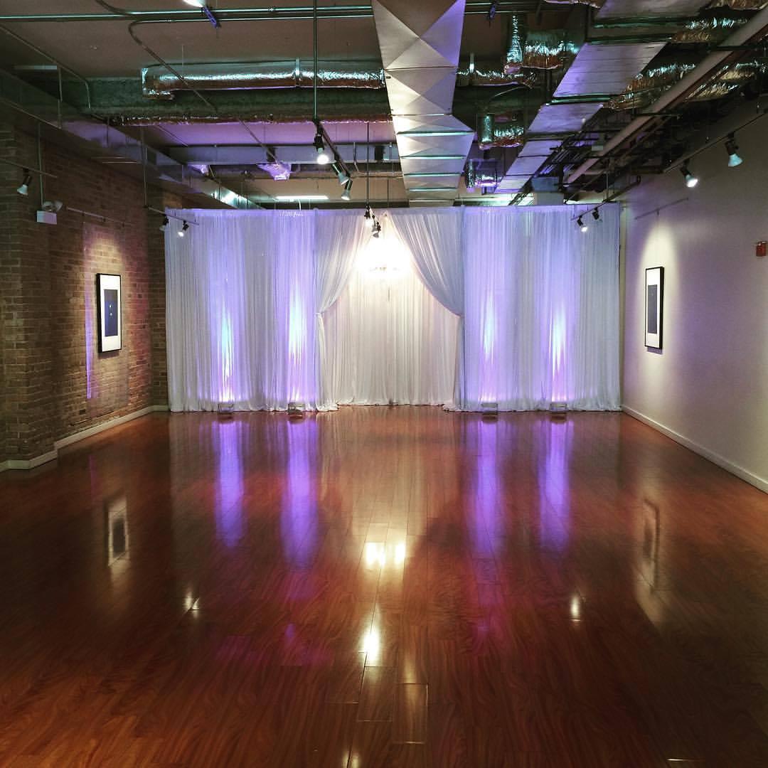 You can have an elegant cocktail hour that will get the party going in the Glass Brick Room, with rich wood floors, exposed brick walls, and lots of space for mingling. Sleek, modern, and elegant, Floating World Gallery makes your wedding an experience!