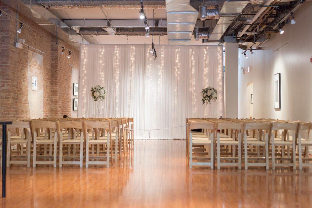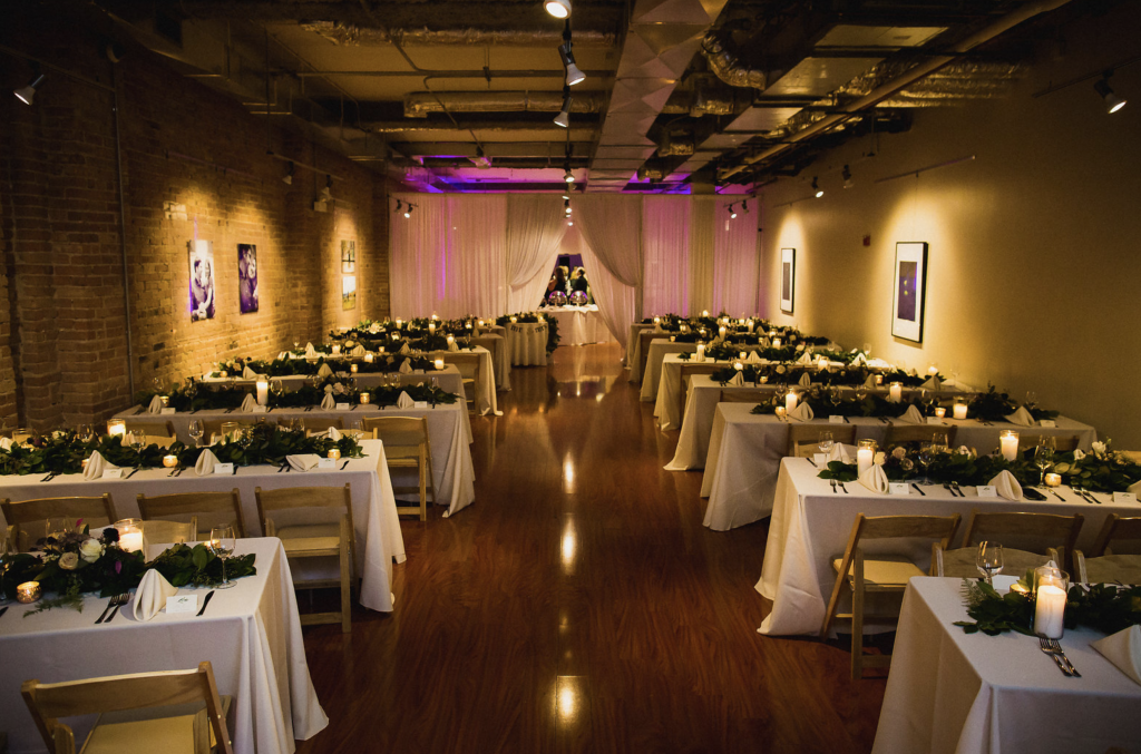 The gallery’s “blank canvas” space allows for your wedding vision to come to life the way you’ve always imagined. Your beautiful ceremony takes place in the long gallery space, allowing for a truly grand entrance. You’ll say your vows with all of your guests witnessing your nuptials in a truly unique space.