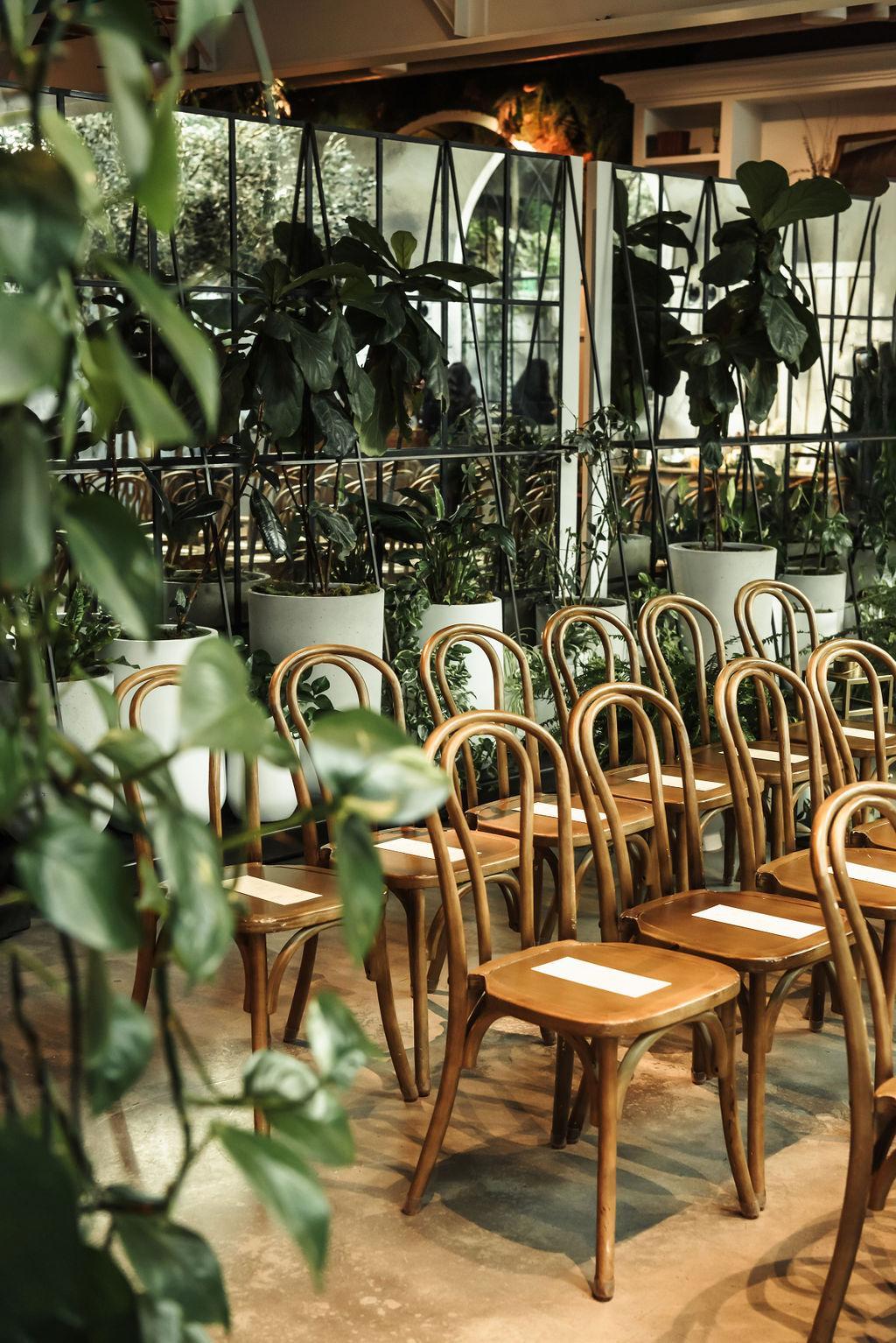 An event at Flora is polished & turnkey — truly an event-ready space. Flora distinguishes itself with features like wainscot walls, custom doors, bespoke furnishings & the amenities of built-in ambient lighting, a state-of-the-art sound system, movable partitions & color LED lighting. Visualize lofted ceilings, a 70-foot long living wall, two 12-foot custom skylights, hanging garden chandeliers, and over 130 plants.