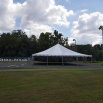 Our large outdoor tent is great for hosting an outdoor wedding during our warmer months. The tent is very large and durable and can withstand even the roughest of weather. Want to have an outdoor wedding but worried about the possibility of rain? This tent has hosted great parties untouched by crazy winds and downpouring rain. For your outdoor reception, relax. We've got you all covered.