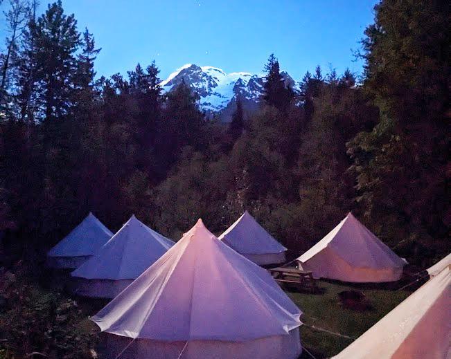 We have nine furnished glamping tents included in overnight rentals during the summertime. Each tent has a queen bed elevated off the ground, full bedding, side tables, rugs, fan, and luggage rack. Glamping tents are available from the end of May to the middle of September.