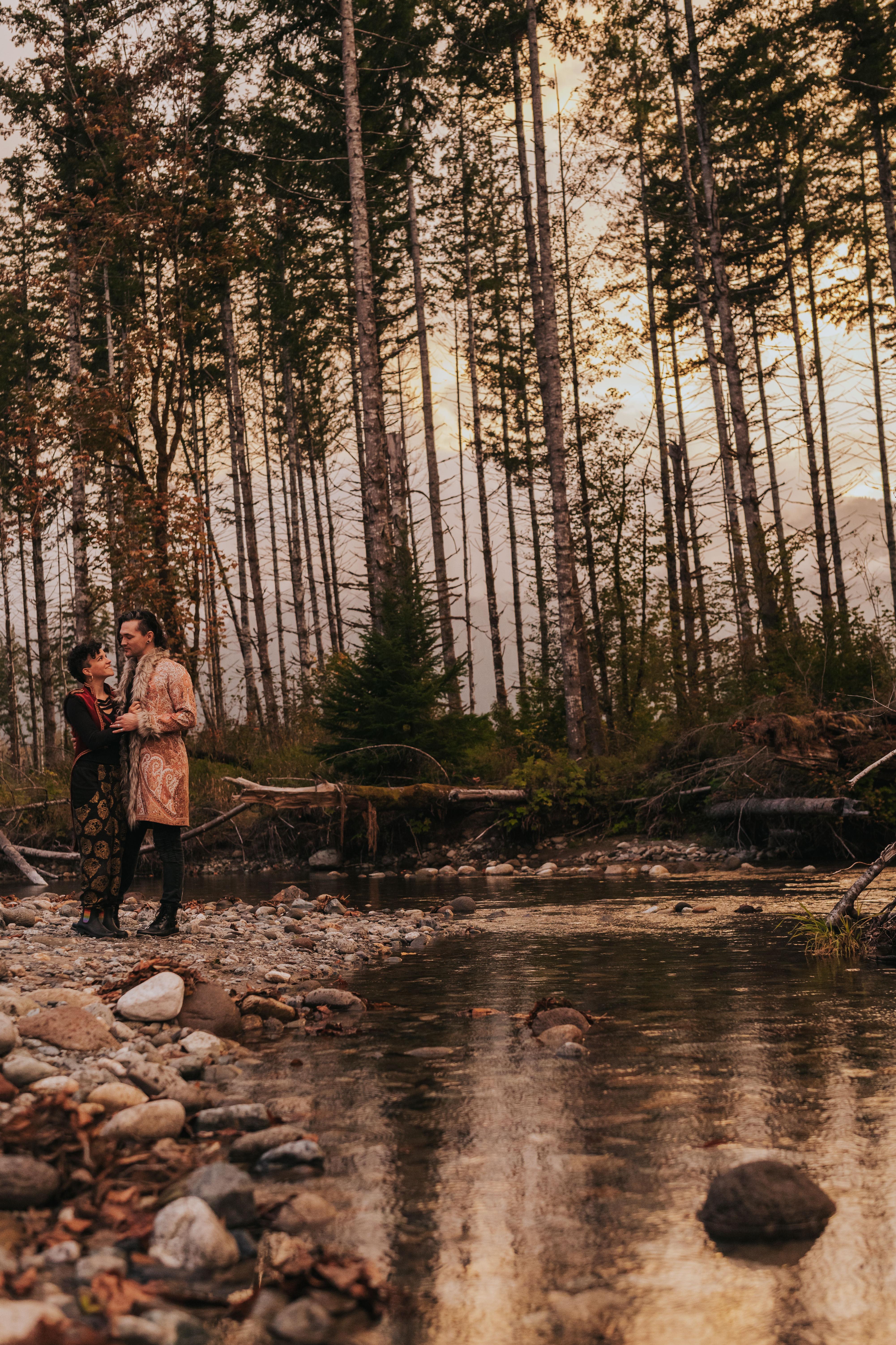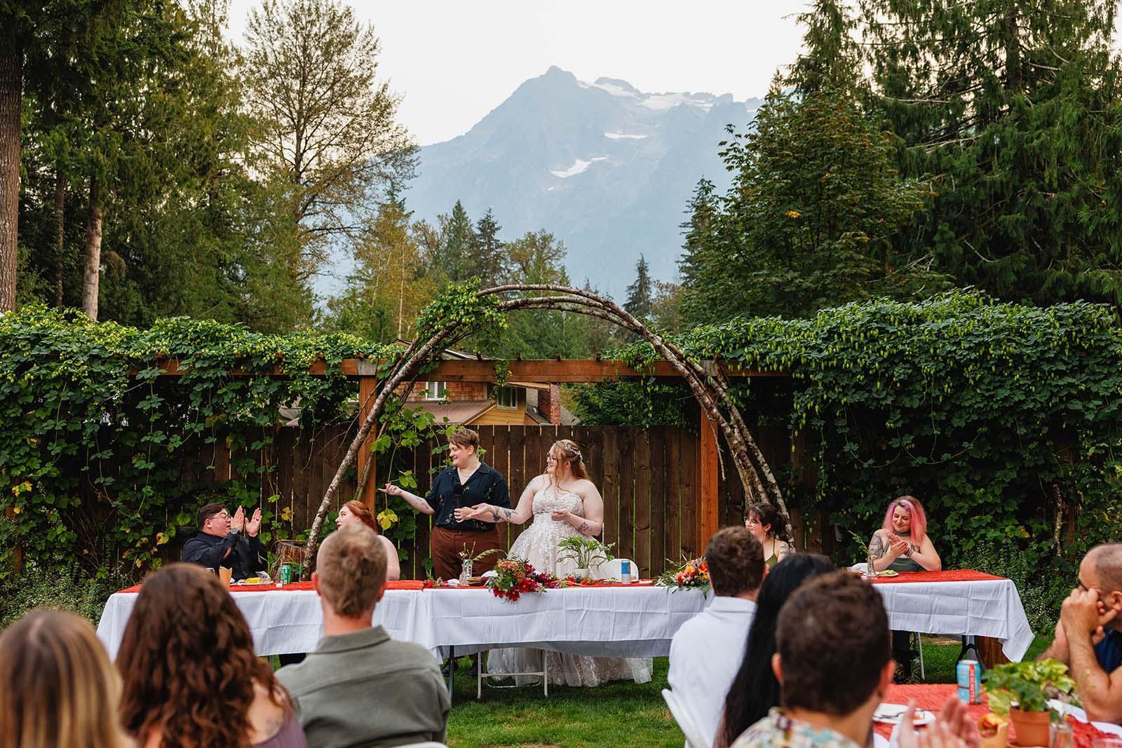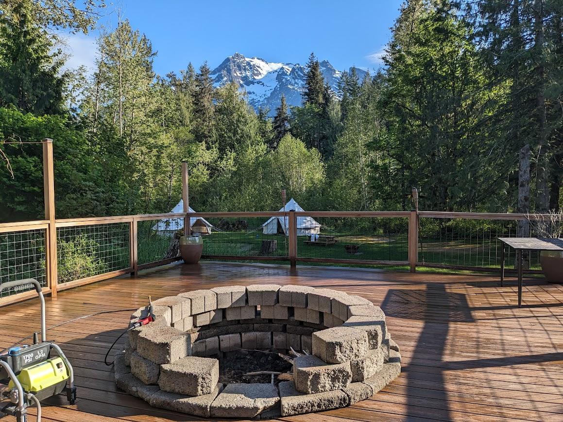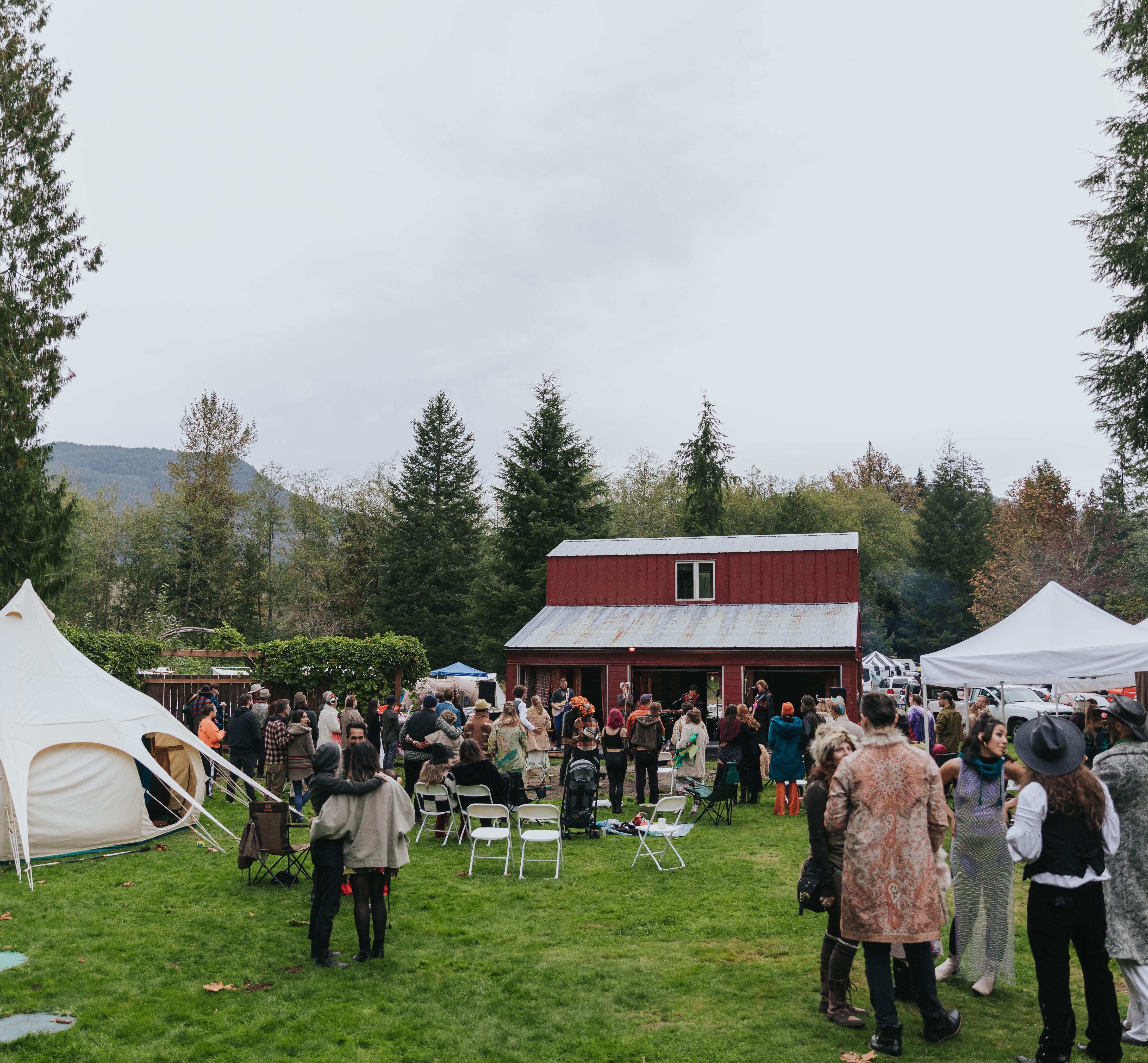 Looking for a magical forest wedding ceremony? Look no further: Forest Creek is a gorgeous woodsy venue with a breathtaking view of Whitehorse Glacier Mountain! Squire Creek runs peacefully behind the property, the mountain lends a stunning photographic backdrop, and an ancient forest ceremony space will make your big day feel profound and connected. Located in Darrington, Washington, we accommodate the couple in a beautiful 2-bedroom home and have 9 fully furnished glamping tents to host the wedding party. Our classic red barn is furnished for comfort, and our built-in outdoor dance floor is ideal for festivities. Our sprawling green lawn, framed by the season’s floral blooms, is excellent for any size reception. We offer 17 folding tables and 100 white folding chairs, a residential kitchen with cooking equipment, flat-tops, a BBQ grill, firepits, propane, and firewood. Please reach out with any questions; I look forward to seeing you here for a tour! Limited open dates for 2026.