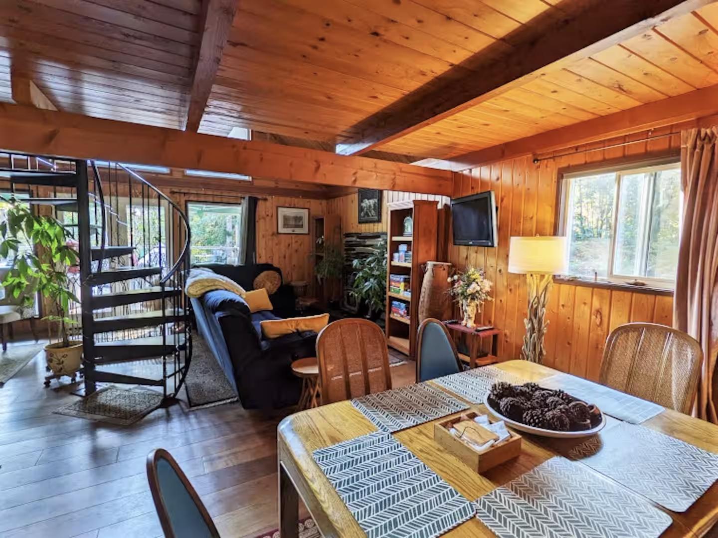 -Two bedrooms with queen beds. -Two full bathrooms. -Full residential kitchen. -Dining room table, two couches, and seating area. -Huge back porch with a view of the mountain and large built in fire pit. -Fire wood is included!