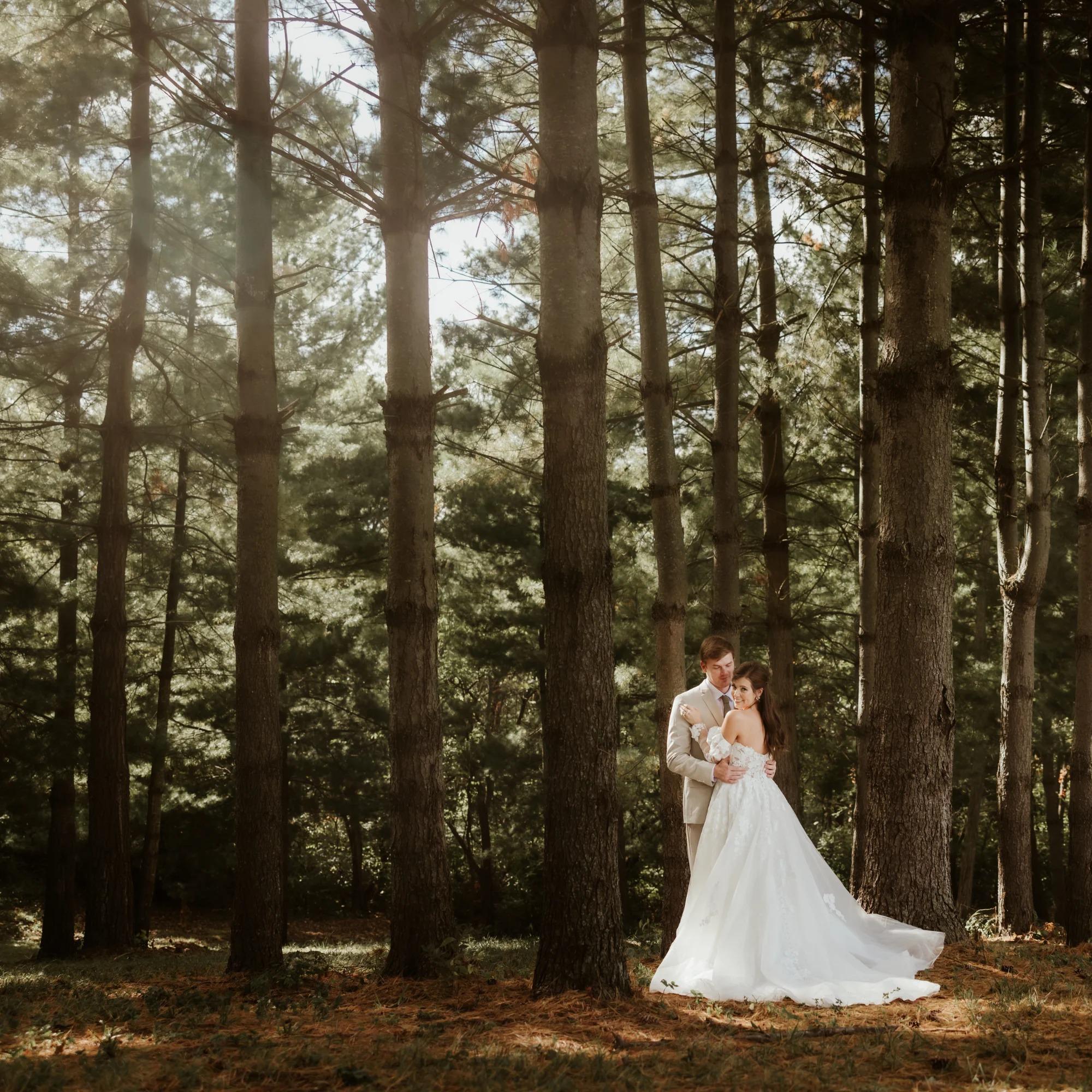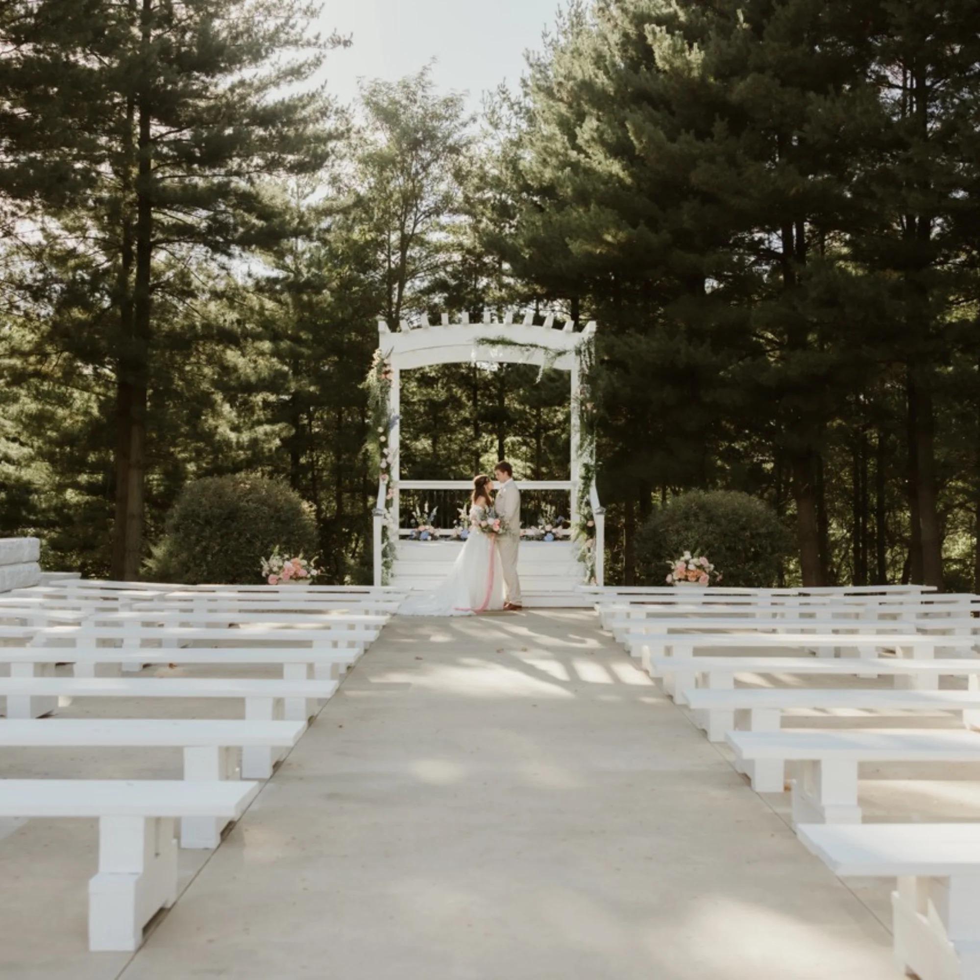 Welcome to Fort Osage Christmas Tree Farm and Wedding Venue. Nestled within an enchanted evergreen forest on the bluffs of the Missouri River, a place of ethereal beauty, we offer a wedding experience that feels as if you have left the rest of the world behind. Witness the wonder that is “Celestial Glow Chapel”, our outdoor ceremony space, as beautiful as it is spellbinding. The Chapel’s open air design, defined only by the edges of the forest and the sky above, is a glorious and mystical cathedral of nature. Standing in marvelous contrast to the rustic tapestry of evergreen forest is the elegant refinement of White Pine Lodge. The Lodge is an intimate and warm retreat for a reception that pairs perfectly with the magic and drama outside. Fort Osage Christmas Trees & Weddings is more than just a venue; it is a sanctuary of wilderness & romance. Here dreams are transformed into reality & love becomes evergreen.