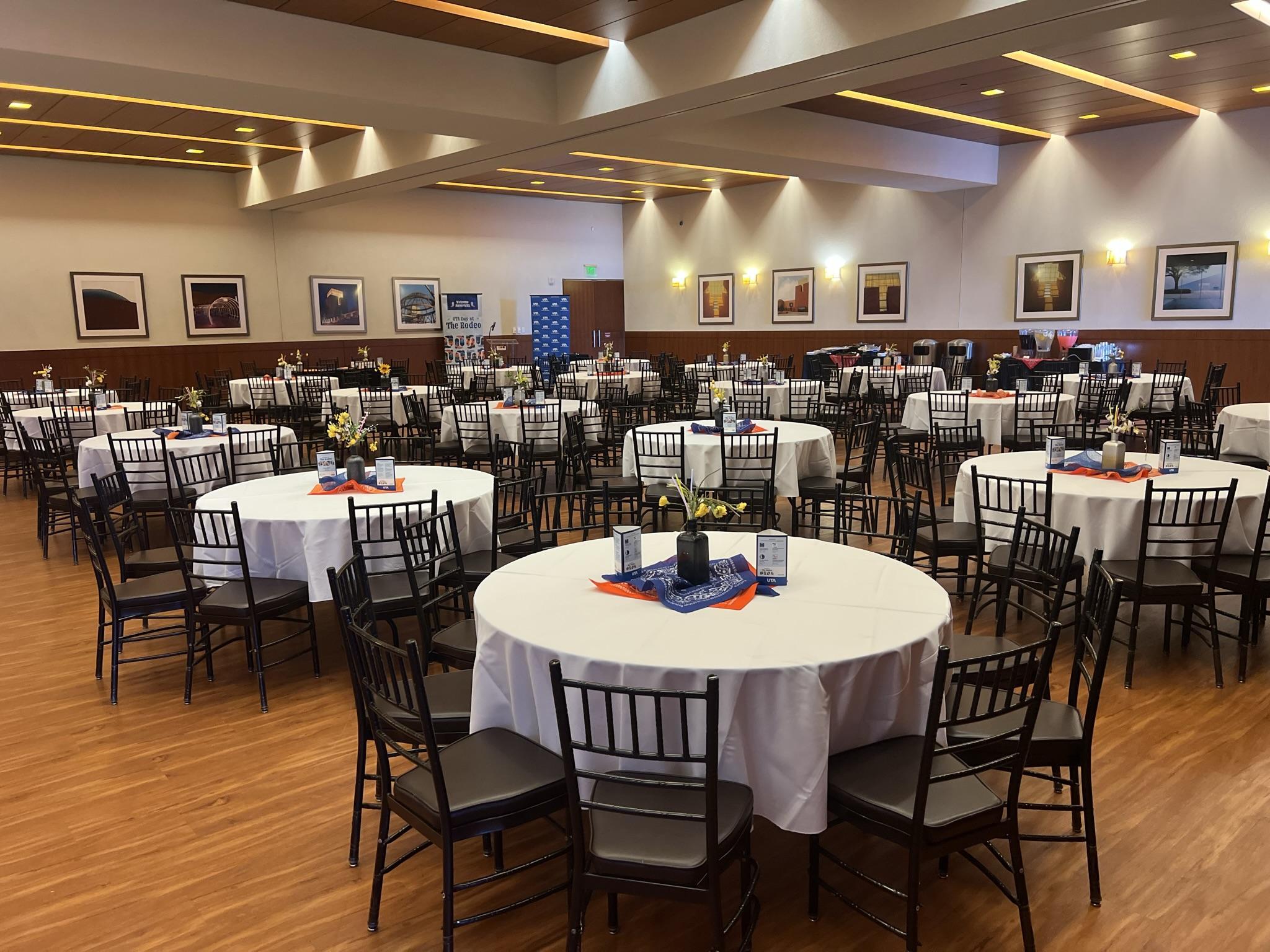 The Oak Room offers an elegant and versatile setting perfect for weddings of all sizes. Beautifully designed to accommodate both intimate gatherings and larger celebrations, the space can be easily divided to suit your guest list. With built-in drop-down screens and projectors, it's ideal for sharing heartfelt slideshows, videos, or live-streamed moments throughout your special day.