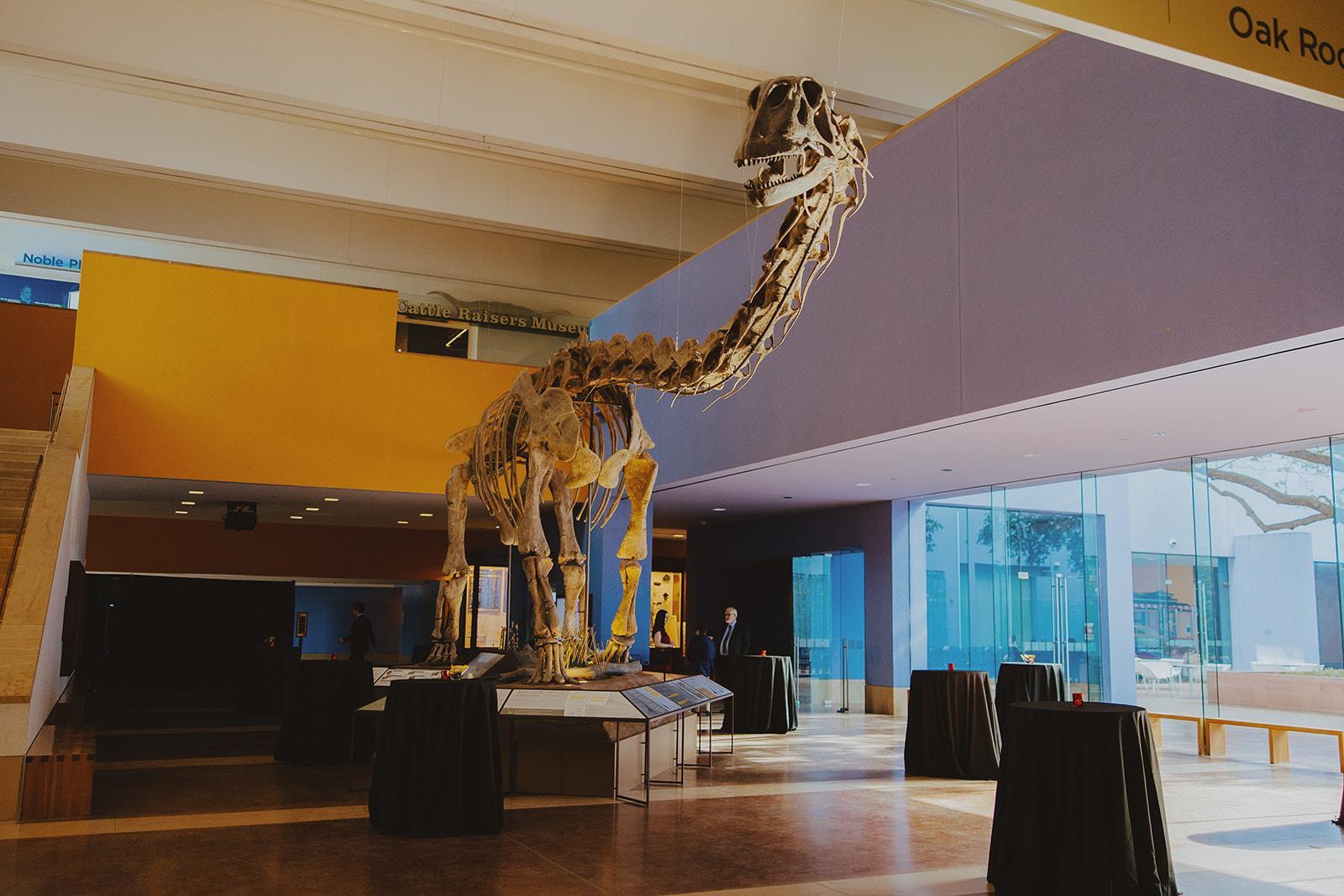 Celebrate your love in a breathtaking space featuring Paluxysaurus Jonesi, Texas’ state dinosaur, an unforgettable backdrop for your big day. With elegant architectural details like a grand staircase, barrel-vaulted ceilings, and soaring glass walls that open to a romantic courtyard, this unique venue is perfect for wedding ceremonies, receptions, or sophisticated cocktail hours.