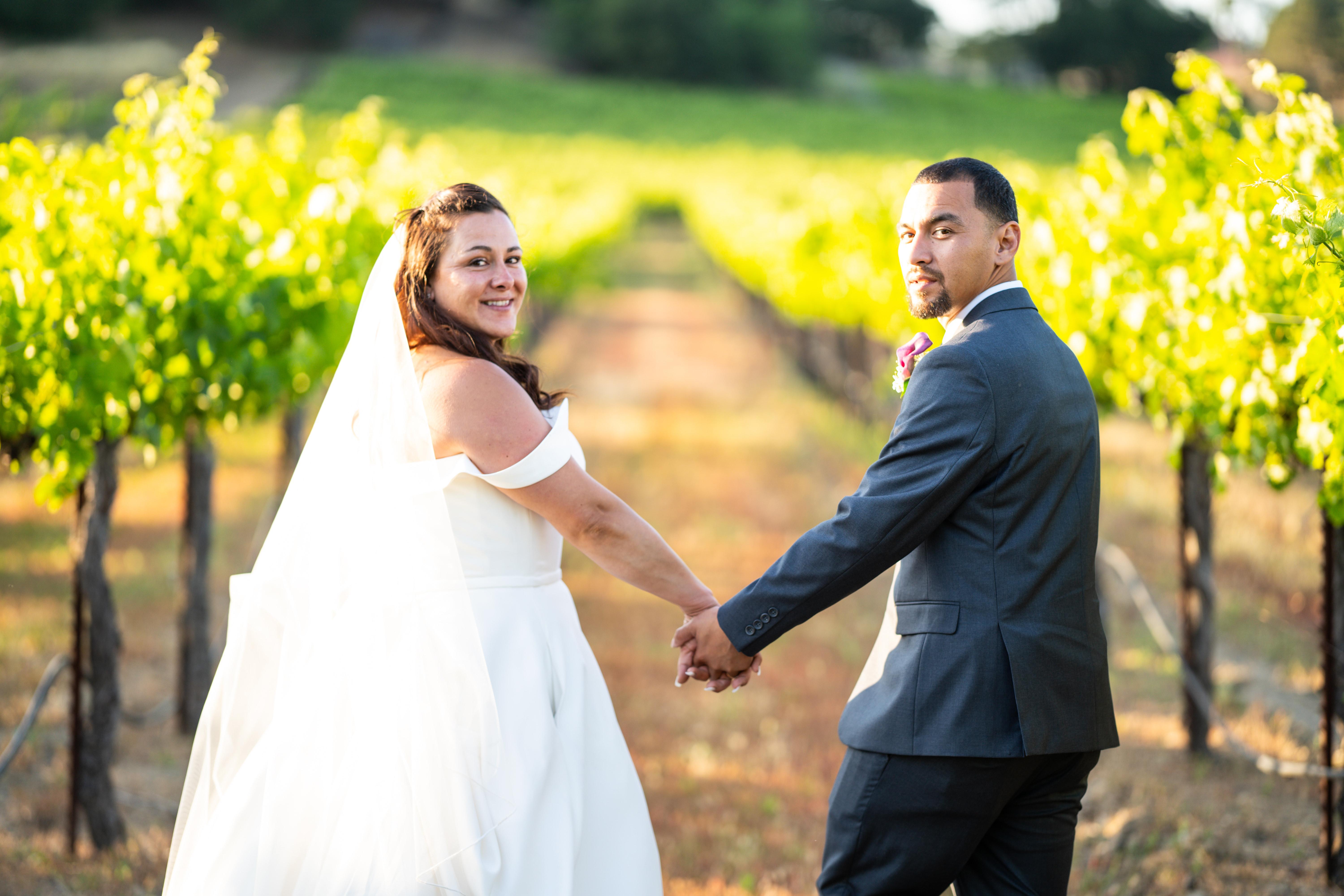 Getting married at Fortino Winery was an easy decision, both when booking and in hindsight. This all inclusive style venue took the stress out of wedding planning and left me the more fun parts. I really appreciated getting to focus on design and personalizing the wedding day, rather than tending to things like finding table and chair rentals or tracking down linens. From beginning to end, the staff at Fortino Winery made the whole wedding process feel smooth, doable, and magical. My two absolute favorite features of this venue are the scenery and the food. First, the scenery: the redwood trees are absolutely beautiful, both in person and in photos. They provided a surreal backdrop and feel for our ceremony (and reception), and every time I see photos or videos from our day, I’m still in awe of the trees. Then on another side, you have rolling hills of the vineyard, golden and effortlessly beautiful. Our sweetheart table sat in front of the vineyard, and we took our bridal portraits there too. No matter where you look, the scenery is natural and inviting. We had about 200 guests, and everyone that I’ve heard from (including my husband and I) loved the food. We did a tasting beforehand of course, so I knew how good the food could be, but buffet style can be hit or miss. HOWEVER, believe me when I tell you, Fortino does not miss. Everything they served was great, even for an event this size. I’m not kidding, so many people went out of their way to tell me how impressed they were with the food. One thing that was more of a happy coincidence: I love that the winery is a place I can visit anytime. The first time my husband and I went back after the wedding, it was like reliving a really good dream. Getting to sip wine, walk around, and reminisce was so much fun. I hadn’t considered this before the wedding, but in retrospect, I’m really glad the venue we chose is easy to visit, and I can’t wait to do this for years to come. I also want to credit the staff for making the day of operations go so well. Any hiccup they encountered was handled swiftly, quietly, and confidently. Fortino gave me the gift of trusting them, and in turn, I was able to be present and enjoy everything. My wedding day at Fortino Winery was one of the happiest days of my life, and I’m very thankful for the role they played in making it so.