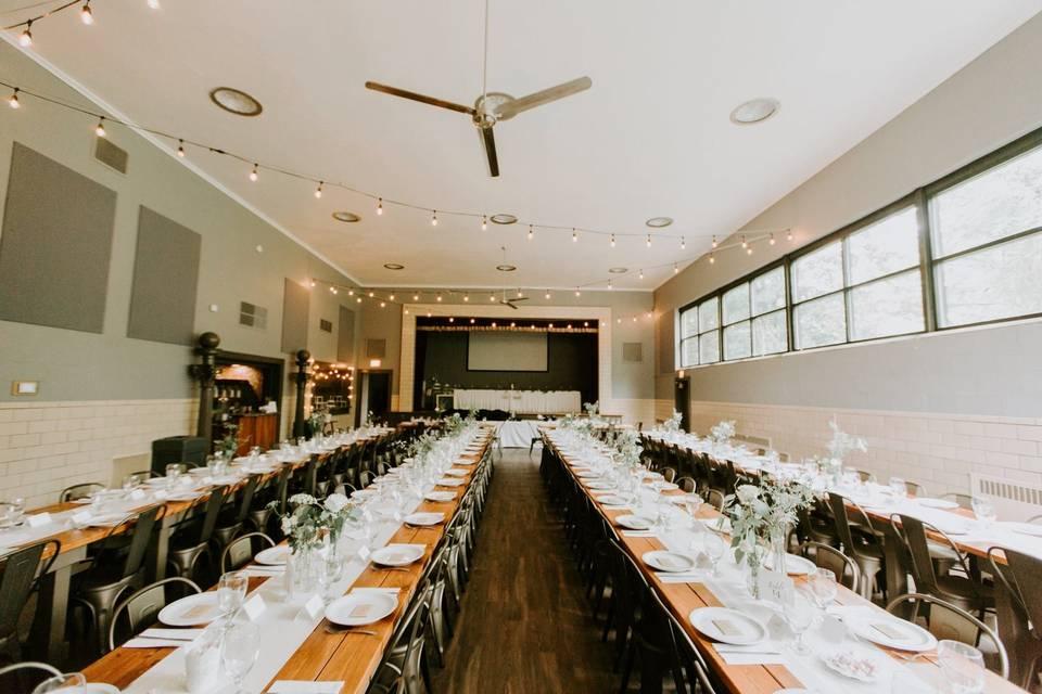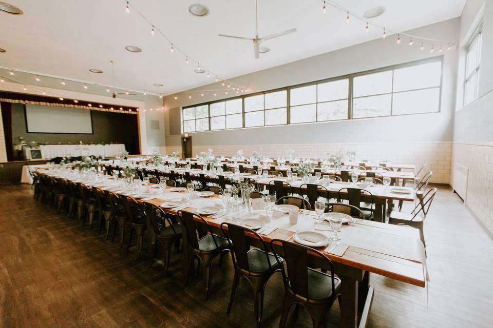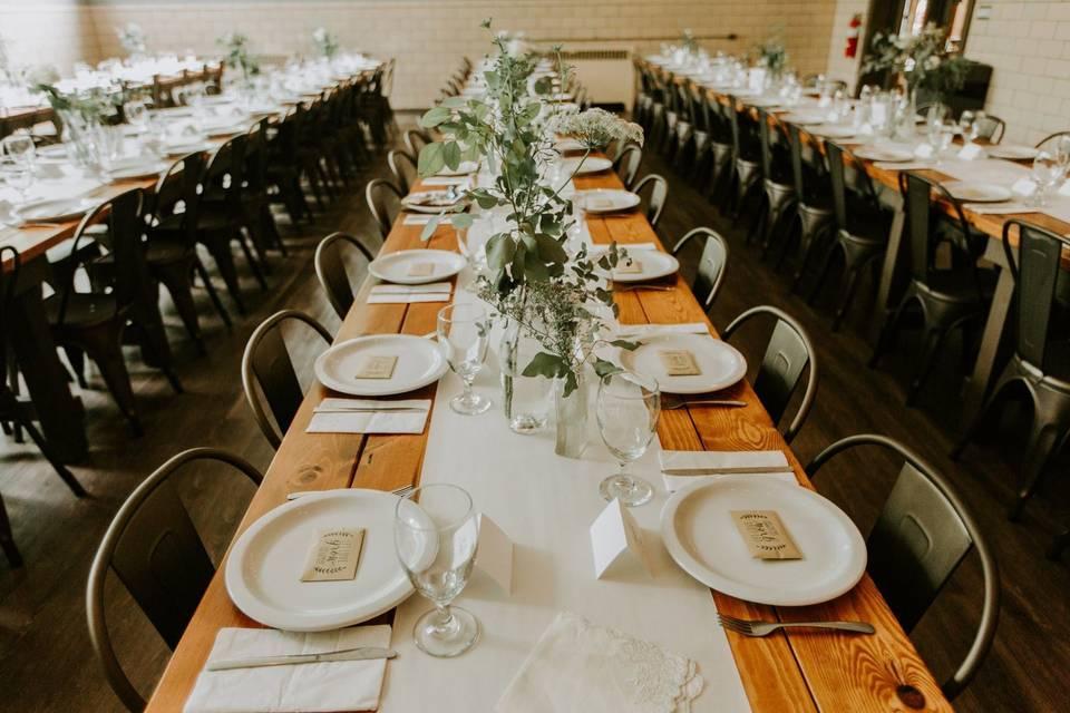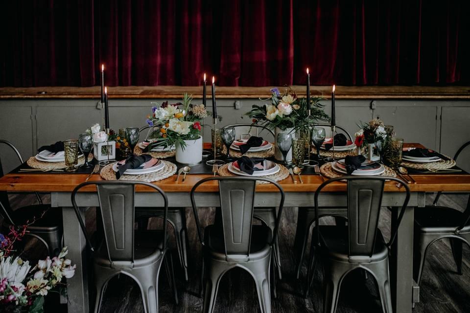 Couples may entertain up to 200 of their loved ones at Forty Nine South for their ceremony, reception, and rehearsal dinner. They have both indoor and uncovered outdoor settings couples may use to host their events, including the various rooms in the venue. Venue provided items include metal chairs, custom-made farmhouse tables, sound systems, and more. Both you and your guests will be enthralled by such a timeless space and all of its wonderful vintage amenities.