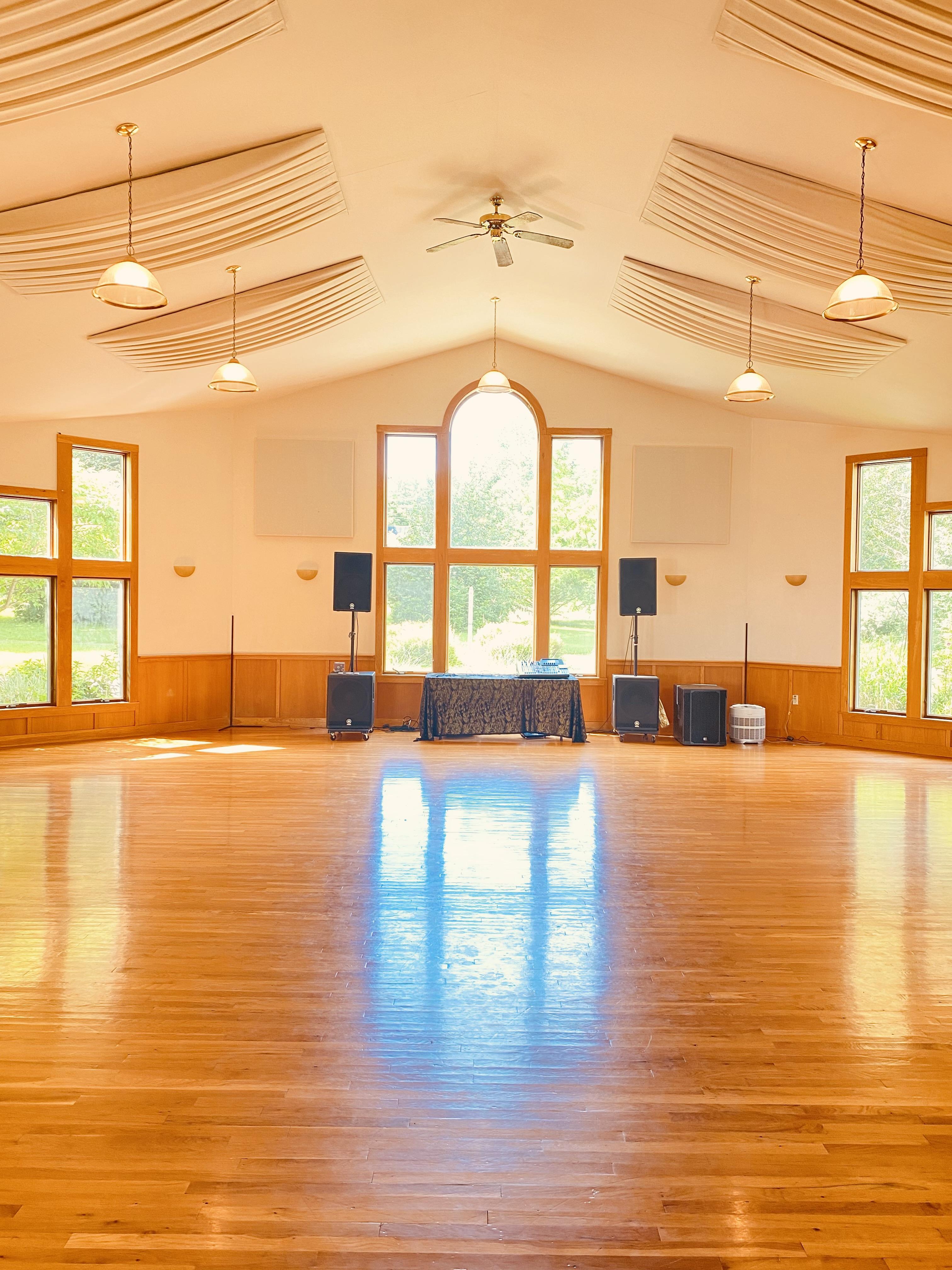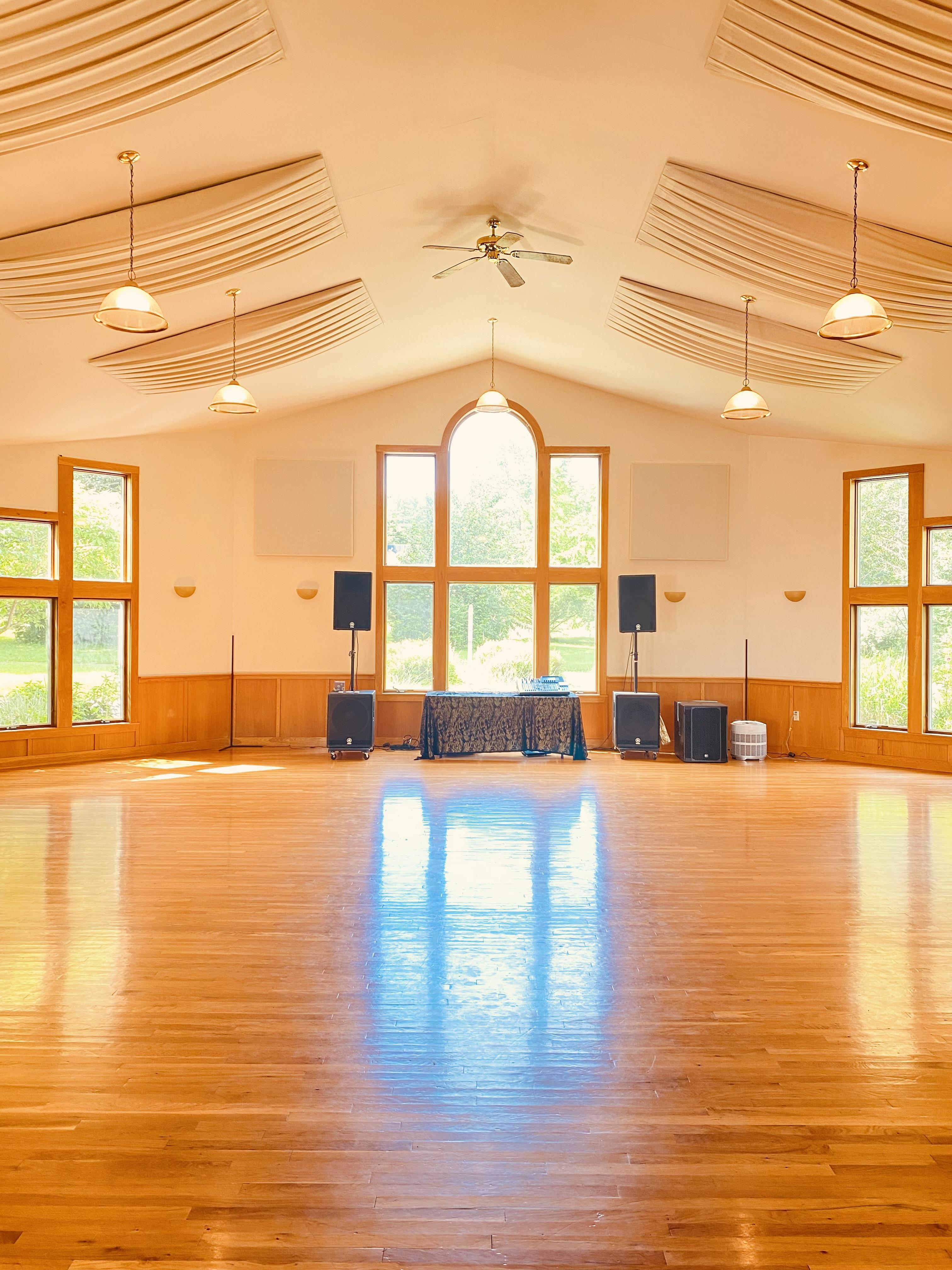 This spacious light-filled room has excellent acoustics, large windows, and hardwood floors make it ideal for concerts, weddings, or other large events. Chairs and tables, sound system, and an upright piano are included. A fully equipped kitchen is available for your next event as an adjunct to your use of the Great Room. It offers plenty of prep space, including large counters and a movable island, full-size stove and refrigerator, and a large serving window into the Great Room.