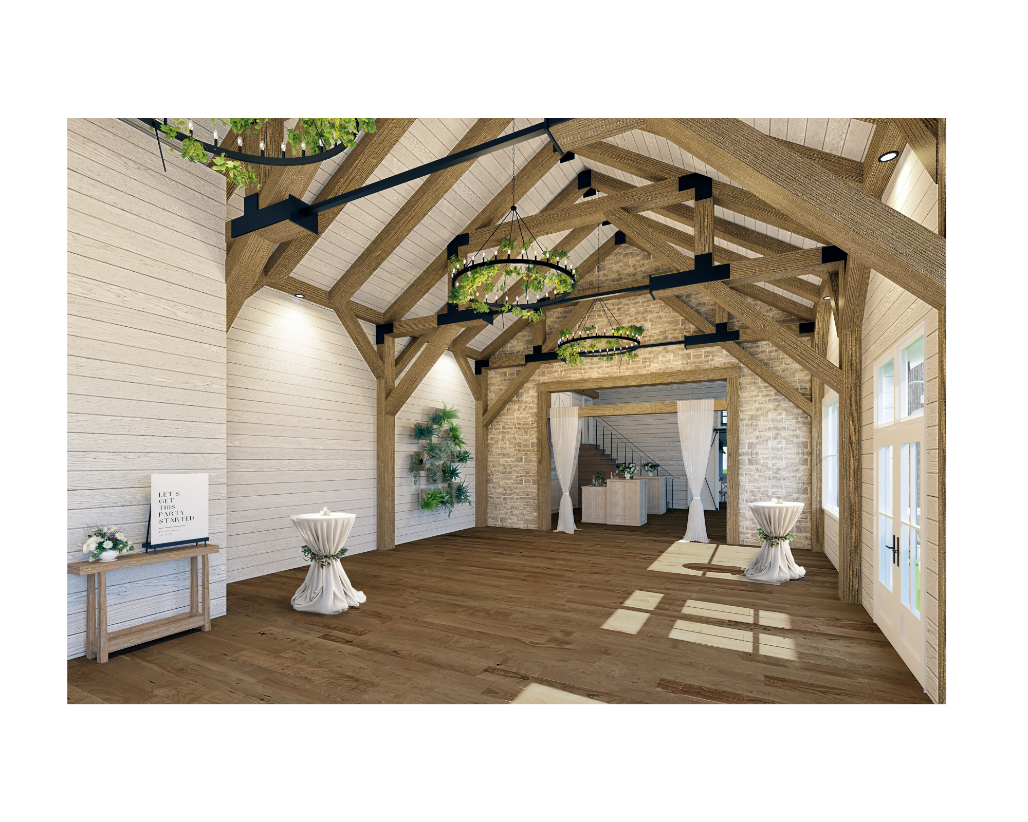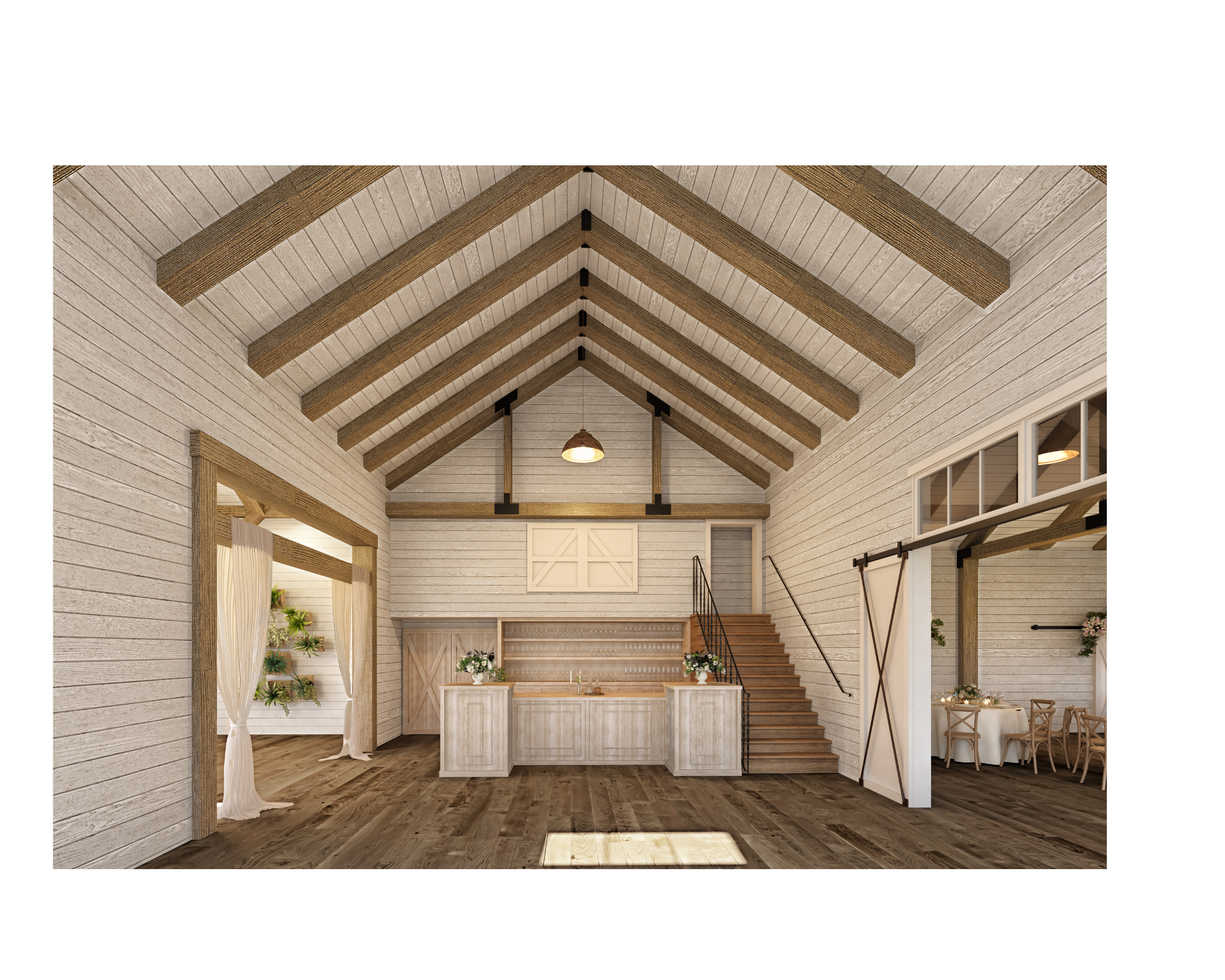 The perfect balance of rustic charm and contemporary elegance, the Carriage House is a brand-new, custom-built venue. With its tall ceilings, exposed trusses, and an impeccable blend of reclaimed and new post-and-beam construction, the Carriage House offers a refined yet relaxed setting for everything from intimate ceremonies to dinner & dancing. Every detail is crafted to provide your guests with a luxury barn experience, all while embracing the beauty of its garden estate surroundings.