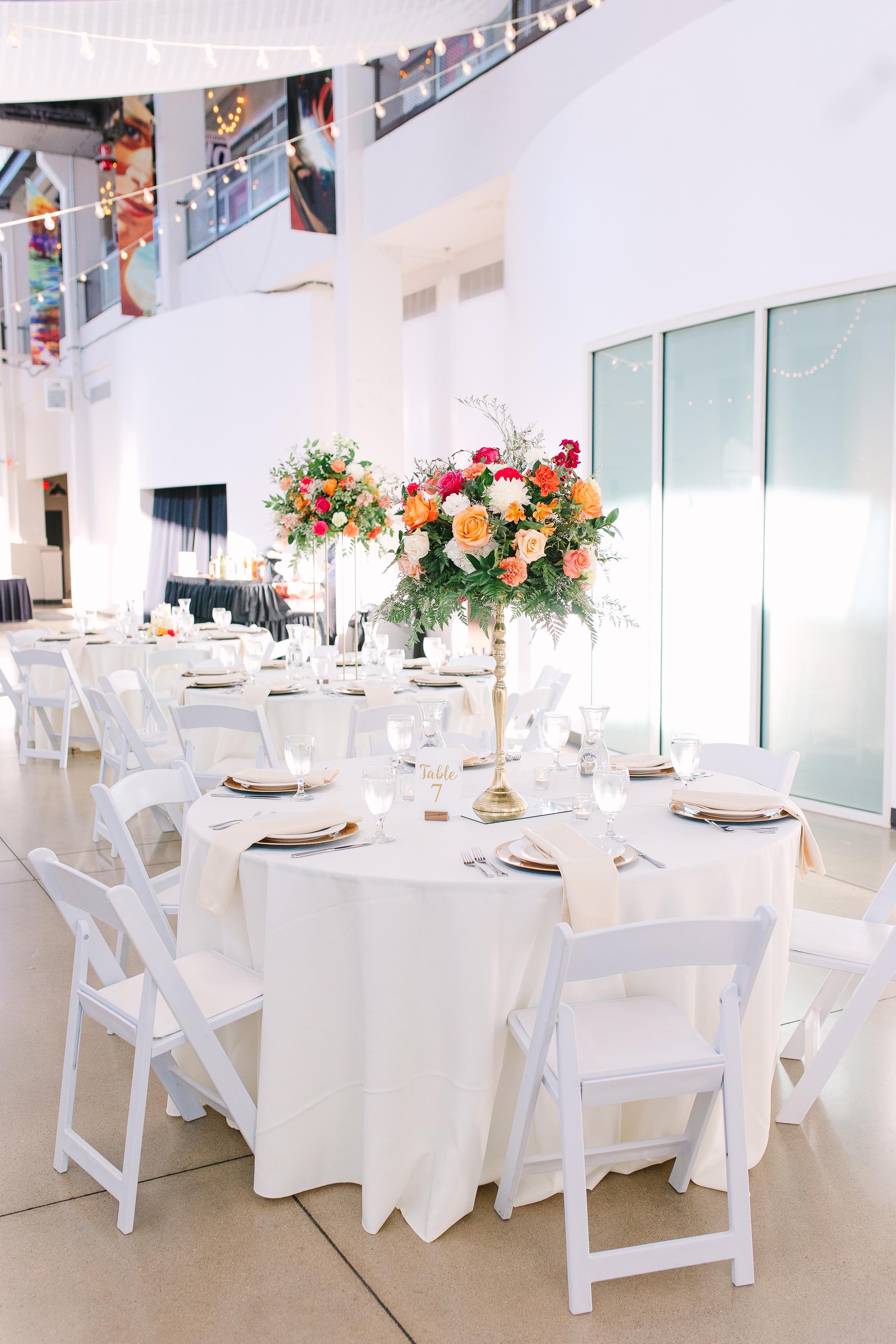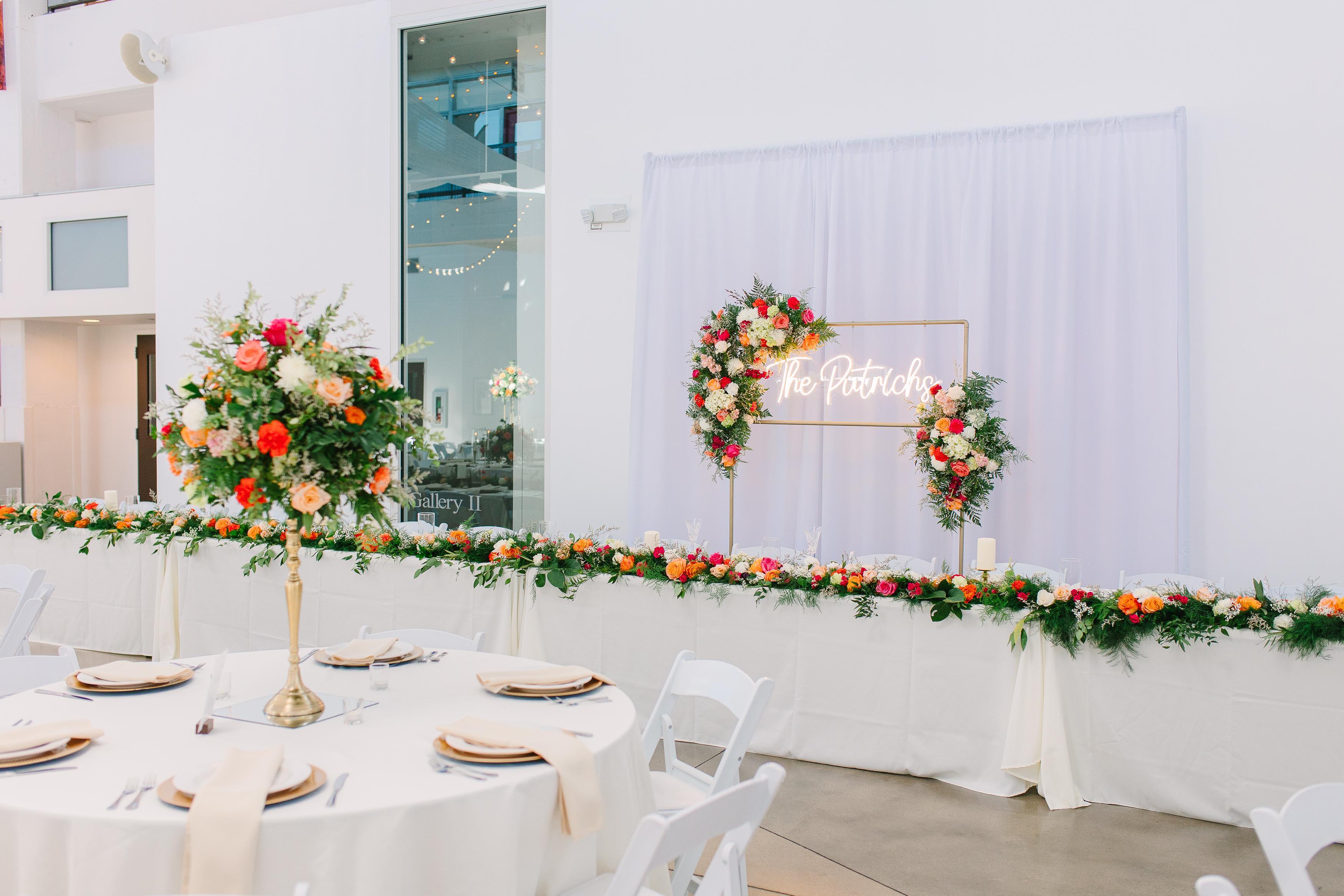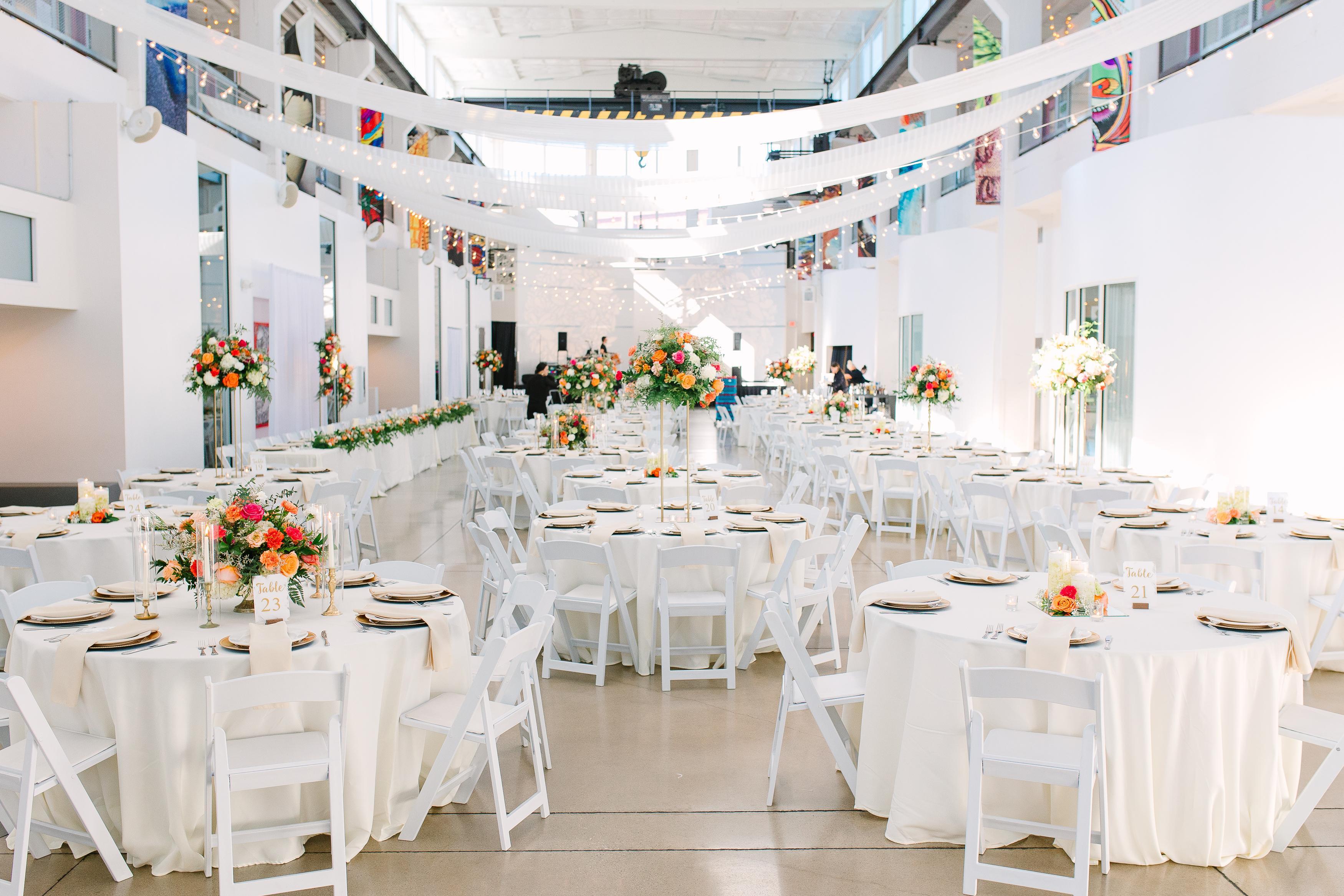 This space features 8000+ square feet with brushed concrete floors. Offering 75-foot ceilings, this is an ideal safe space for ceremonies, receptions, and parties.
