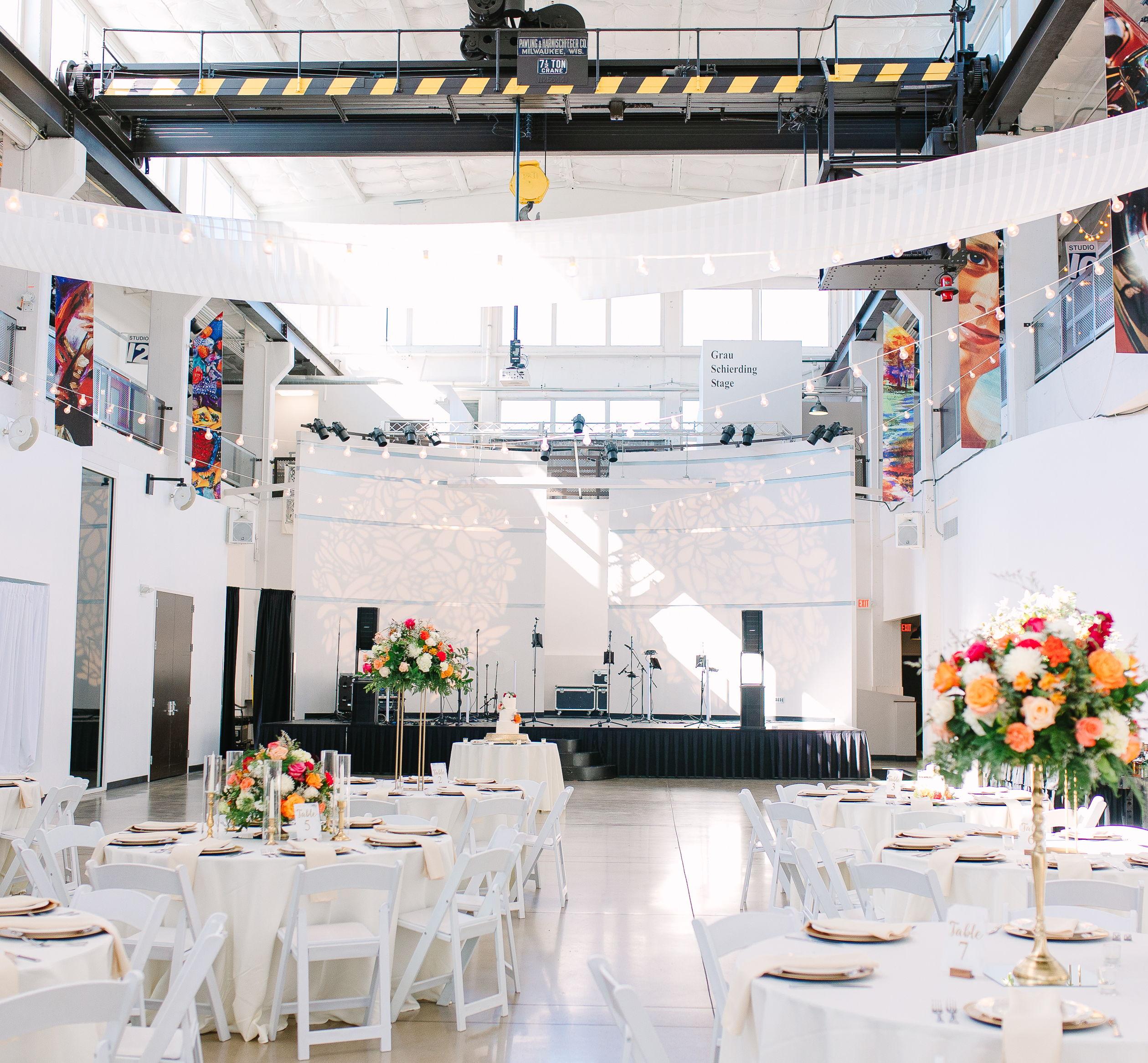 Tables & chairs (set up and removal), audio/visual, catering kitchen, Baby Grand Piano - Yamaha GP Disklavier 0 Model: DGC1, Stage – 31’ long x 19’ deep x 18’ high, 2 planning meetings with custom floor plans (PDF). Venue access for event set up between 10:00 AM and 5:00 PM the day of the event. 5 hours of event time, 1 hour of clean up/load-out time, 150 parking spaces with handicap accessibility, Security (off-duty police officer). Art Galleries open during your event!