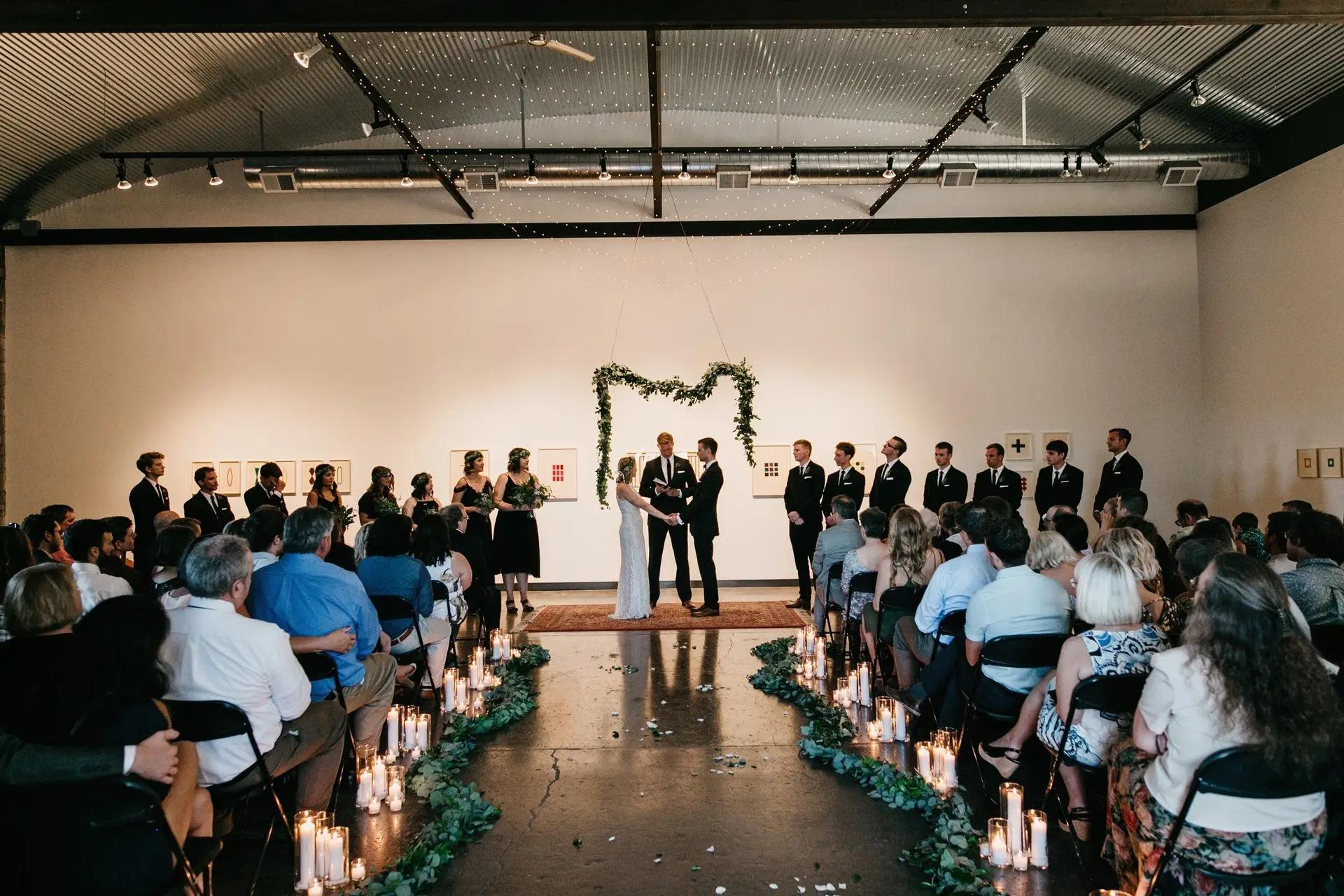 Weddings and private events are conducted outside of standard business hours to ensure total privacy for you and your guests. Foundry recommends a start time of 6 pm or later. The rental includes the indoor gallery & outdoor patio and sculpture garden. Capacities depend on event configuration. Indoor Gallery: -140 guests for a seated dinner -180 for wedding ceremony -200 guests for a cocktail- style event Outdoor Sculpture Garden: -200 guests for a seated dinner -200 for a wedding ceremony -250 guests for a cocktail-style event