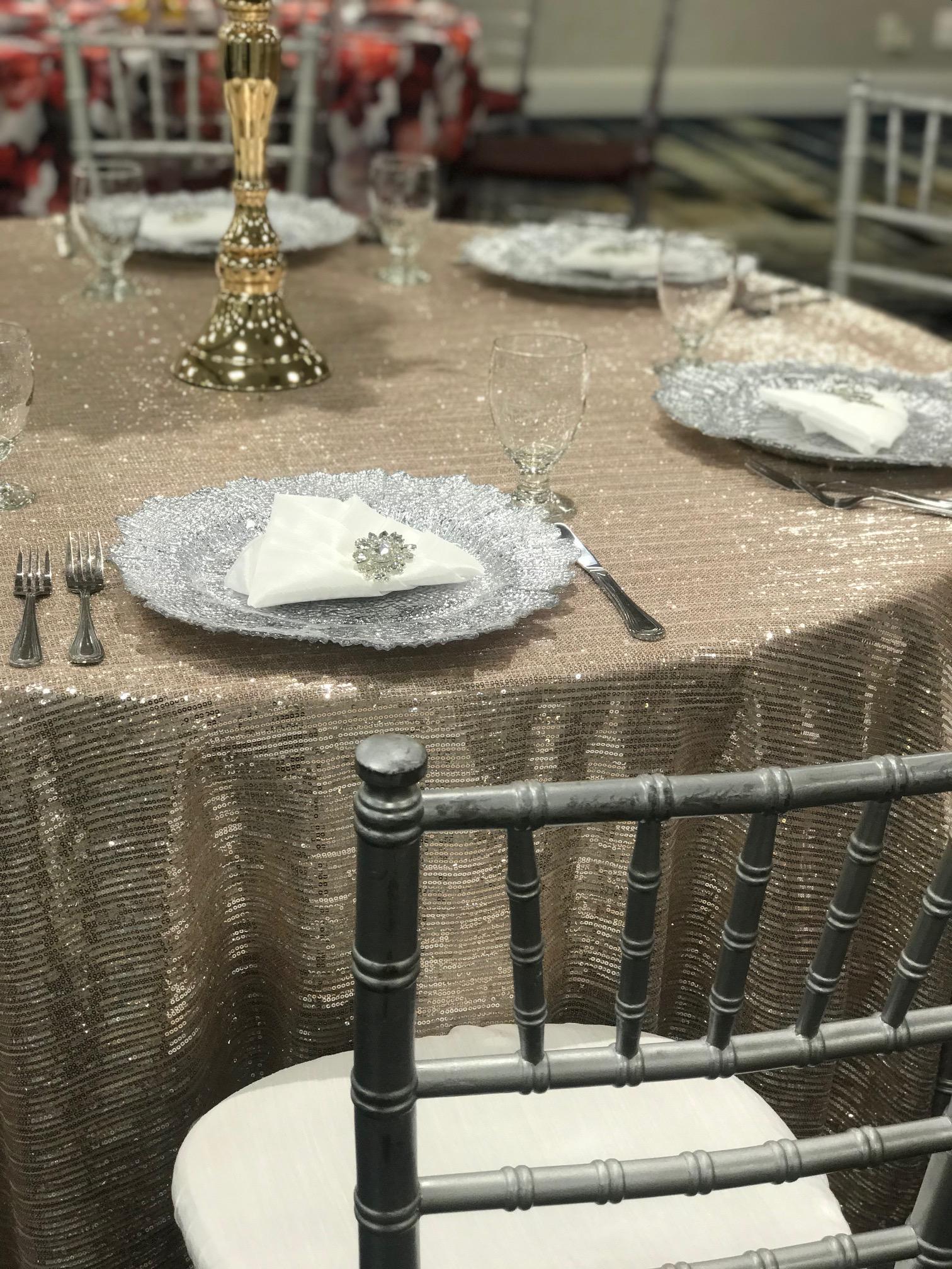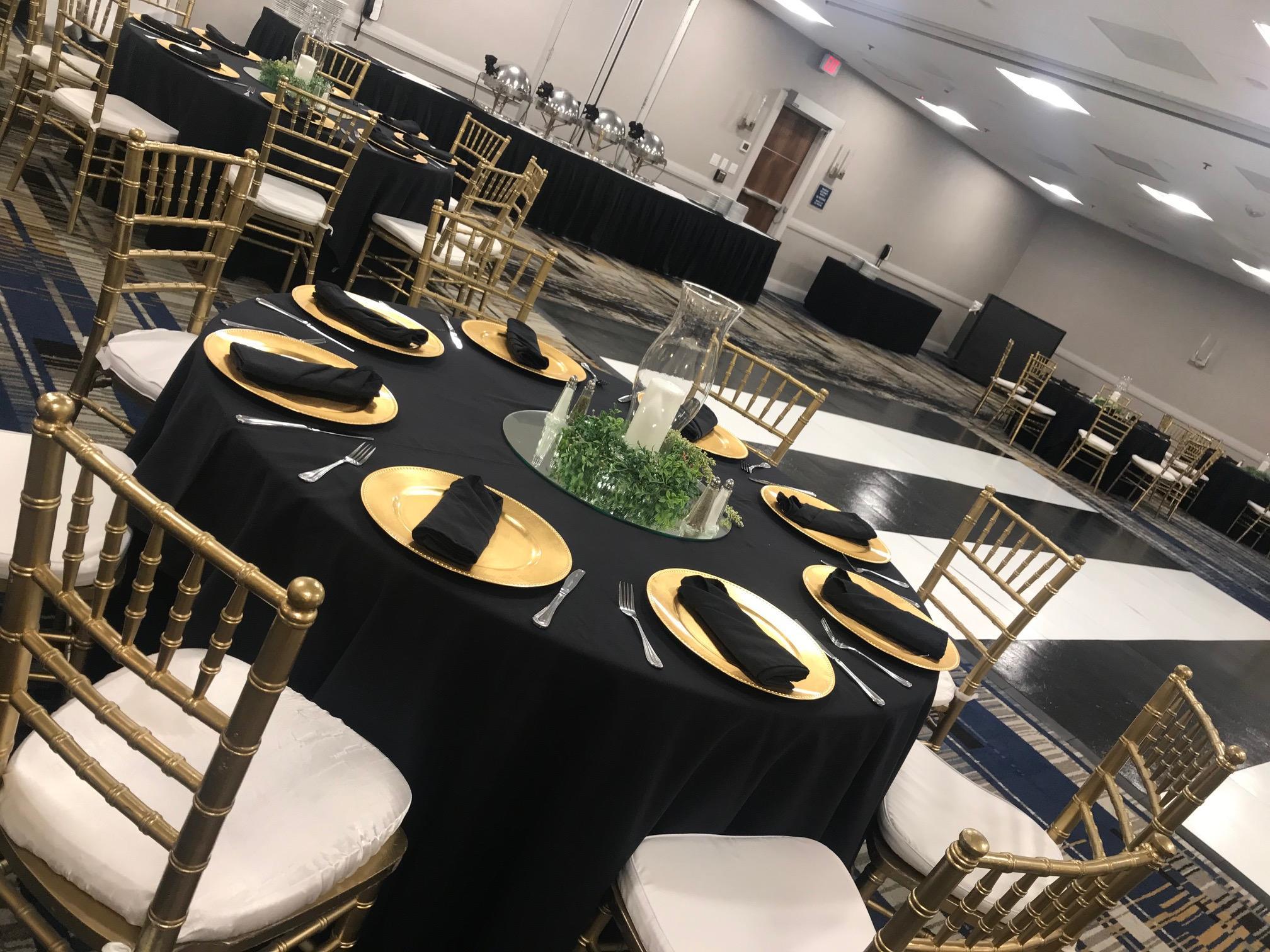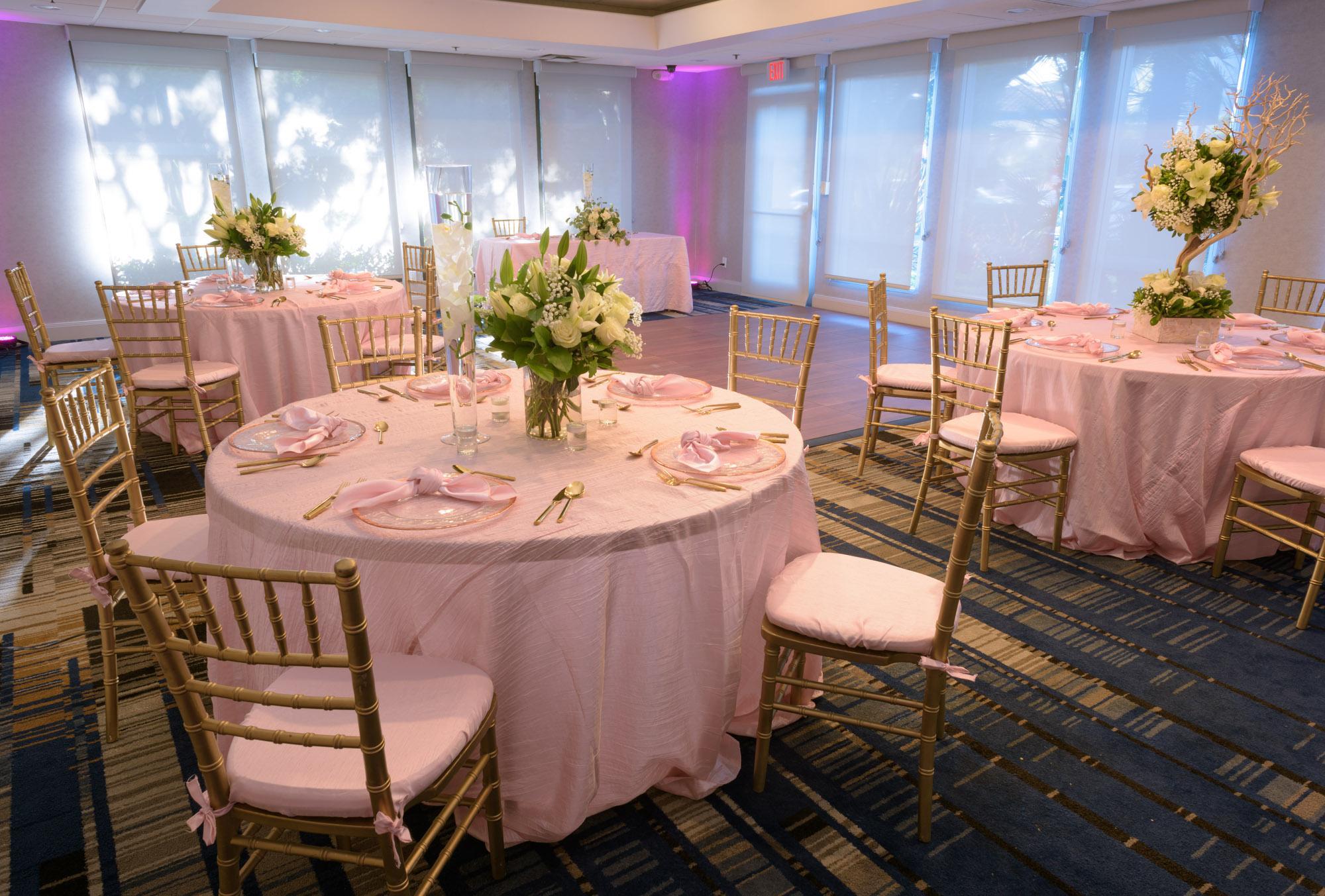 -Tables and chairs -Complimentary linen -Mirrors and Votive Candles -Water Station