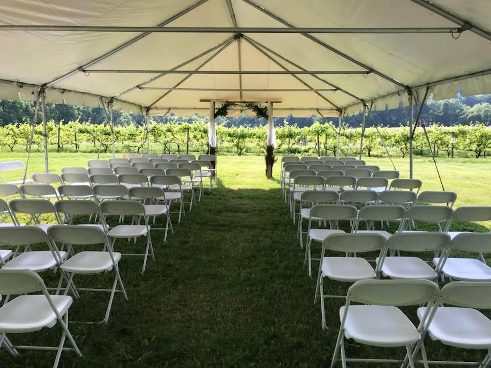 Four Sisters Winery provides a tented outdoor facility, protected from the weather, with a beautifully decorated tent.