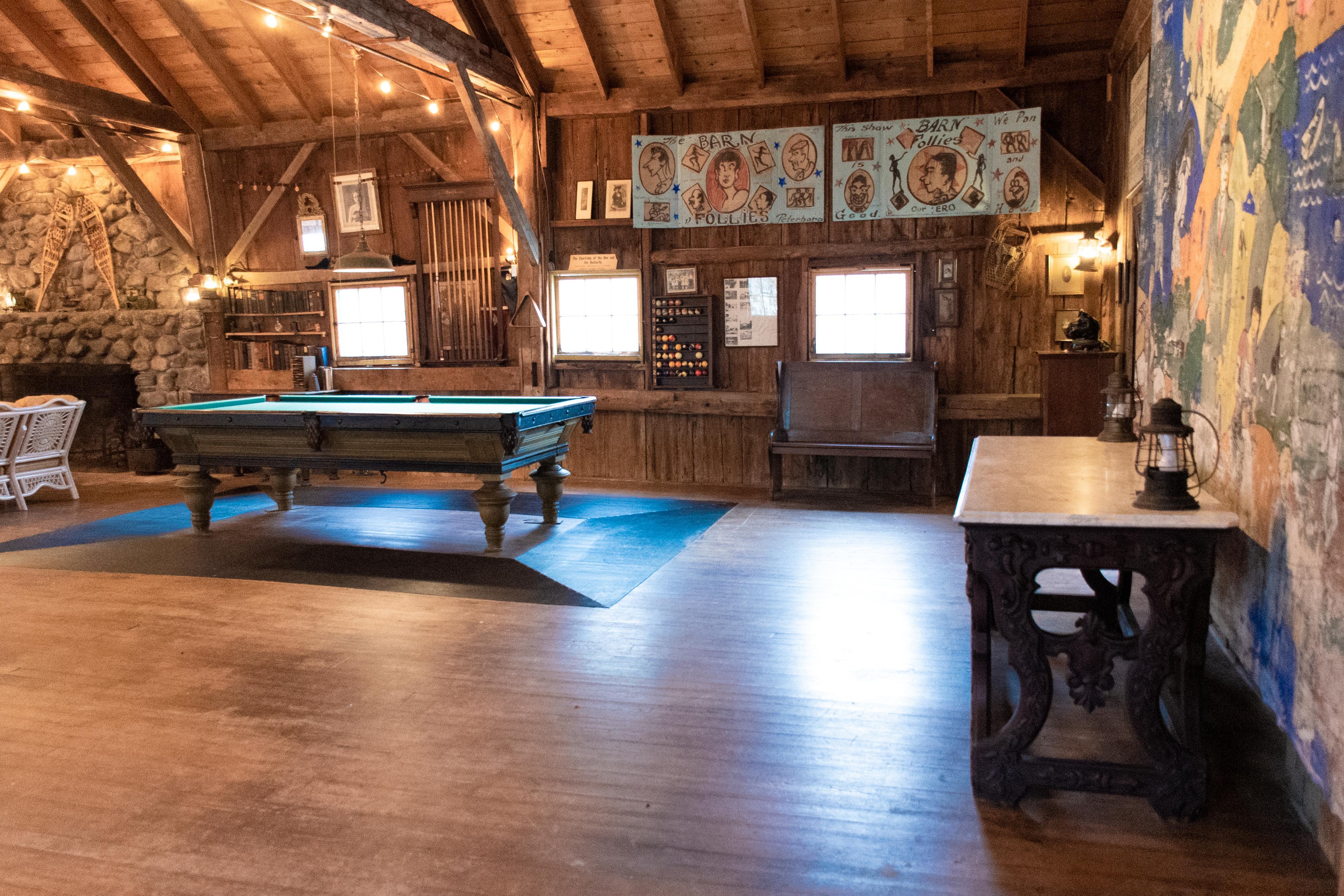 This space is our main feature - 1800 square feet that can be set up in many different ways. It includes an impressive stone fireplace, a vintage pool table, a theater backdrop from the 1920's, and many high quality antique decorative elements. Perfect for your wedding reception, this space can also host your ceremony, rehearsal dinner, and many different forms of celebration.