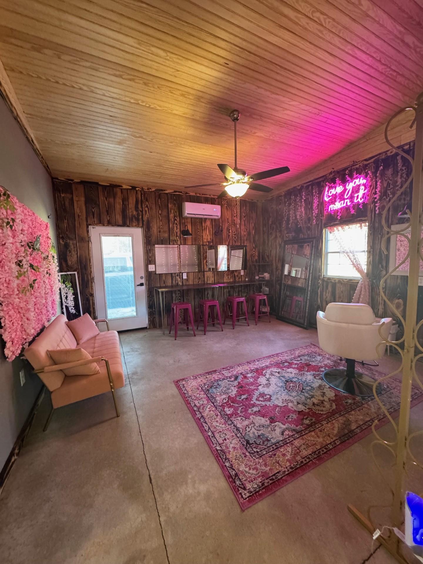 -salon chair for bride/bridal party -vanity seating with mirrors for 4 -loveseat and chair -bluetooth speaker -individually controlled HVAC unit for room -private entrance