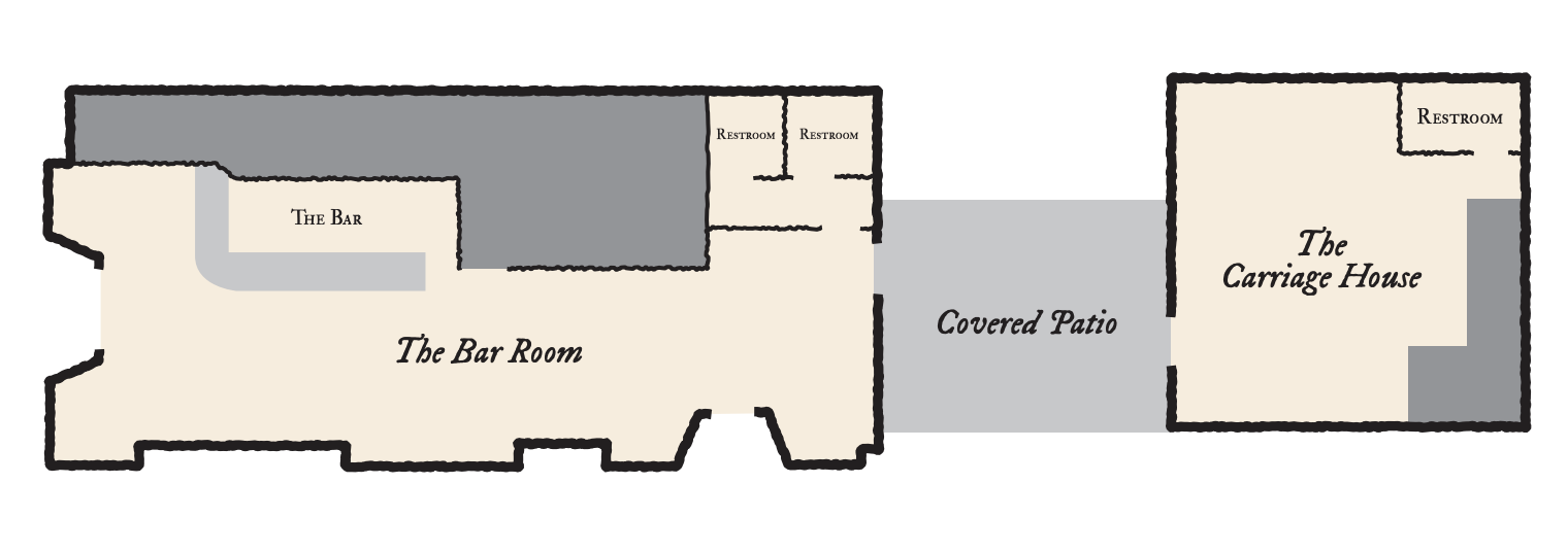 During the day the Carriage House is a stage for your bright, sunlit brunch. In the evening the oil lanterns are flickering and a moody warmth fills the room. Ideal for a sit-down meal, this unique space can play host to a variety of occasions.