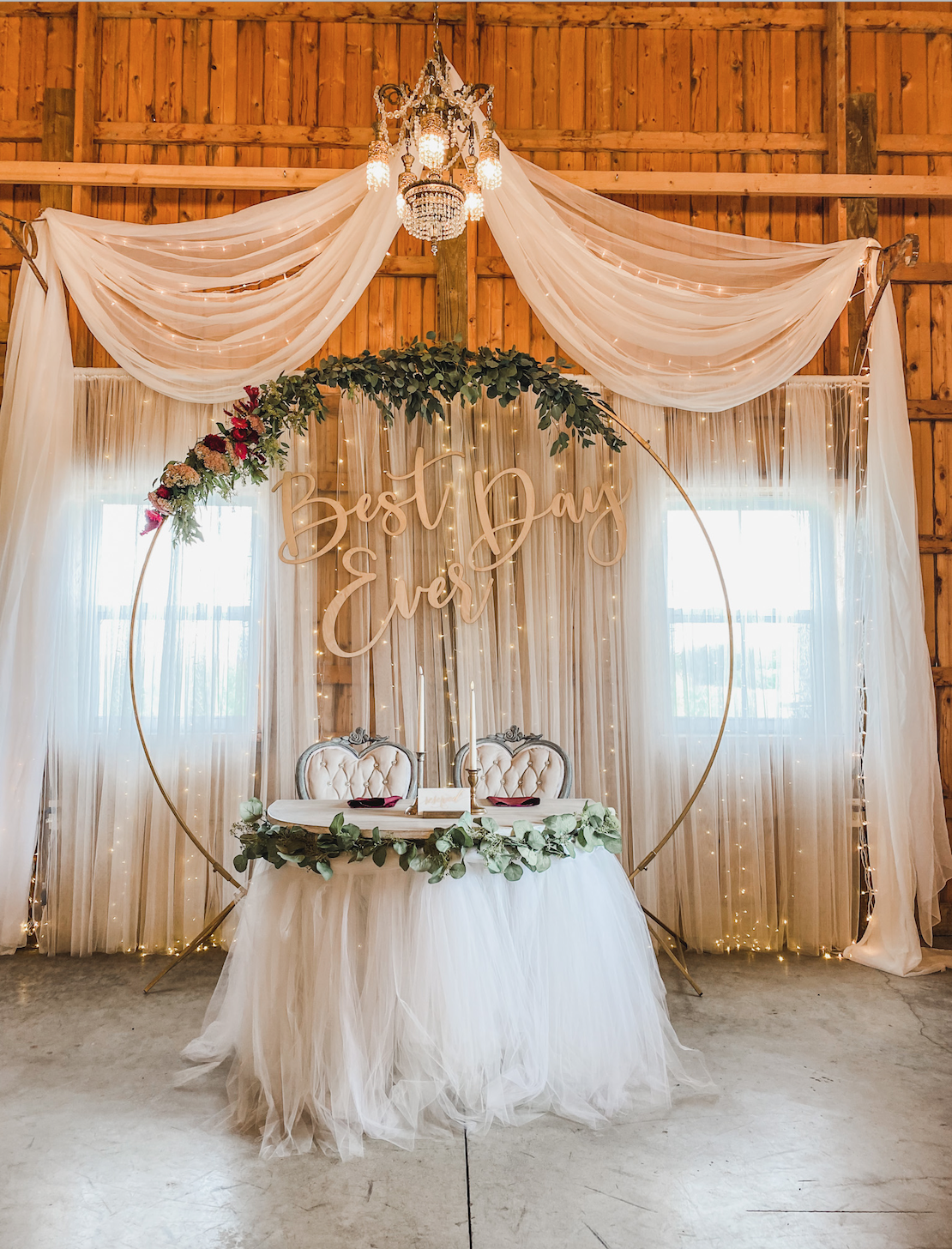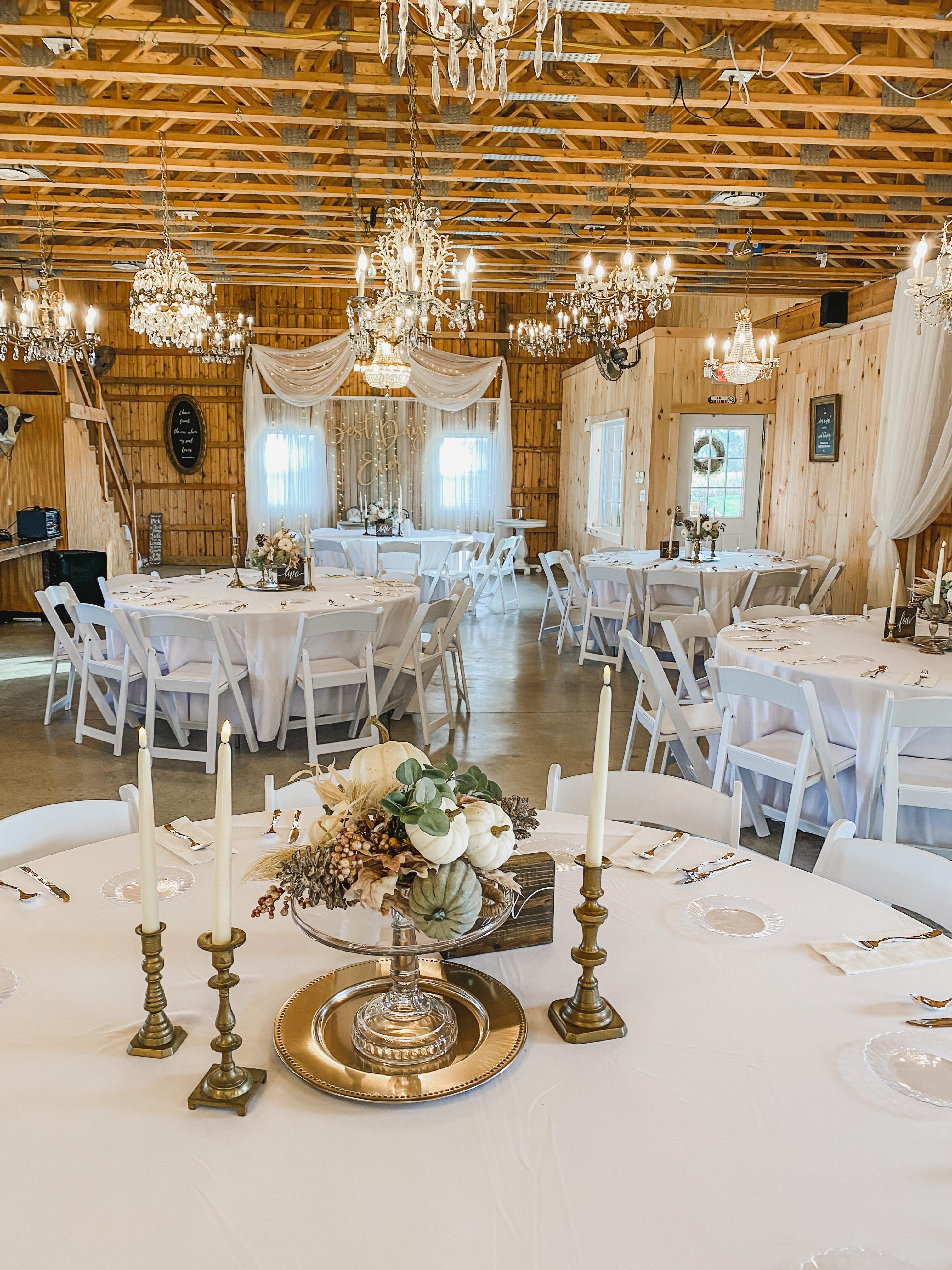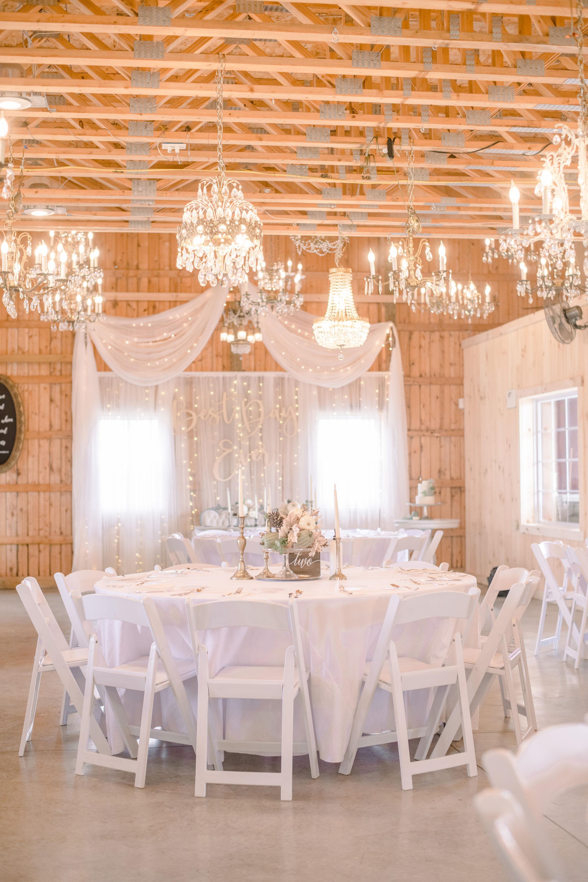 The barn is rustic yet elegant, filled with chandelier lighting for your best day ever.